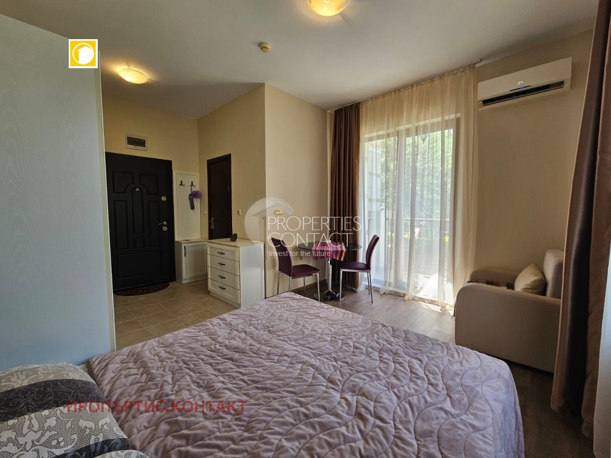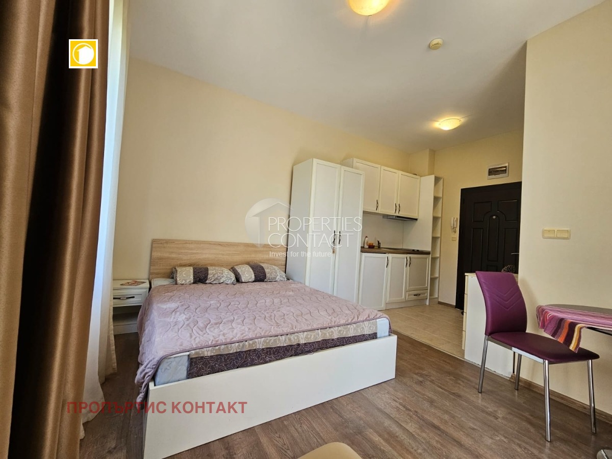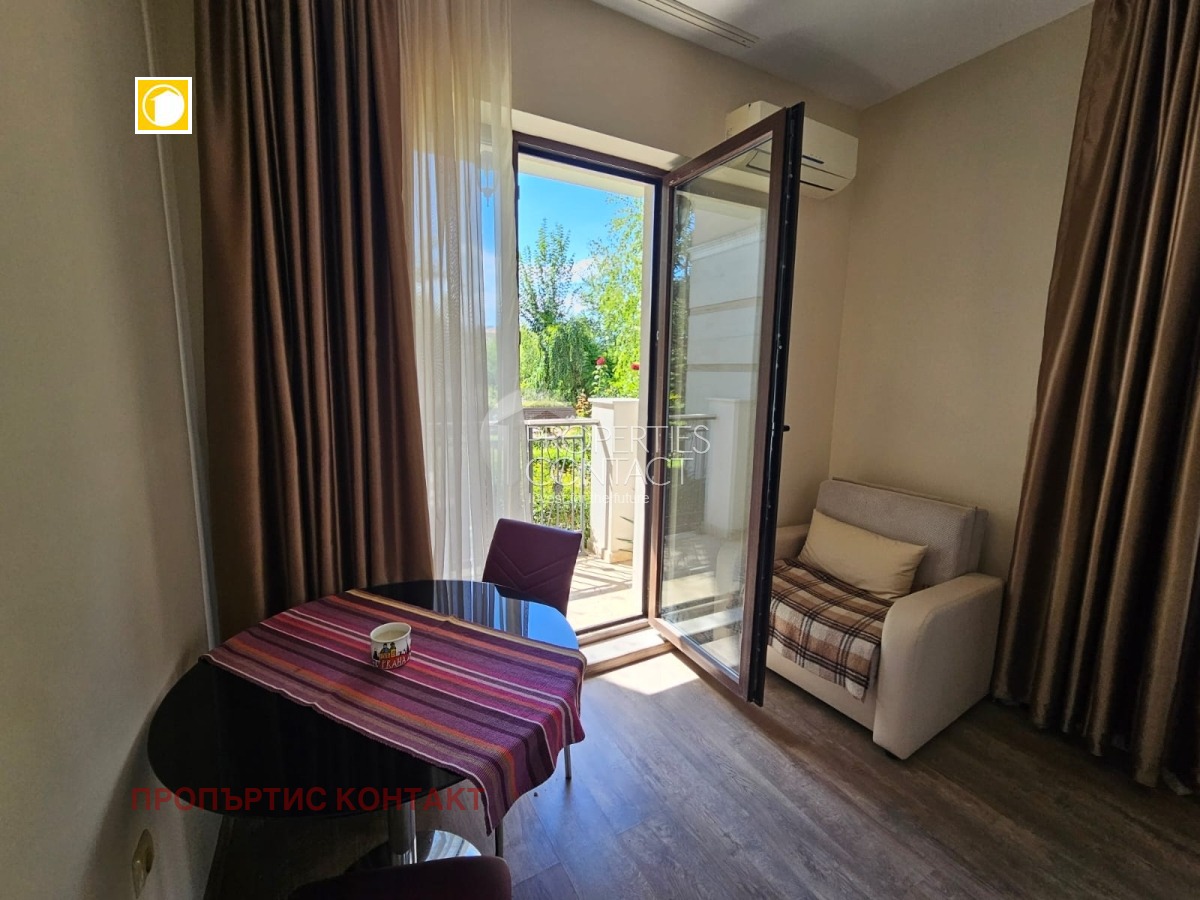 Предлагаме за продажба уютно студио в комплекс „Южна Звезда“ (South Star), разположен в популярния квартал Кокалу, в новата част на Несебър – само на 300 метра от плажа и на 50 метра от супермаркет. Характеристики на имота: Площ: 35 кв.м Етаж: 1 от 5 Състояние: напълно завършен, до ключ Обзавеждане: има мебели и техника Отопление: климатик Такса поддръжка: 300 евро/годишно Акт 16 – получен Паркинг и асансьор ? Разпределение: Просторна стая с кухненски кът и зона за спане Баня с тоалетна Тераса с достъп към вътрешния двор Удобства в комплекса: Затворена, добре поддържана територия Зелена зона и ландшафтен дизайн Зона за отдих и барбекю Детска площадка Видео наблюдение и паркинг Локация: Комплексът се намира в оживен и целогодишно населен район, близо до аквапарк „Парадайз“, автобусна спирка, магазини и ресторанти – отлично място както за постоянно живеене, така и за ваканционен имот на морето.