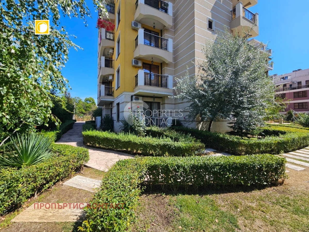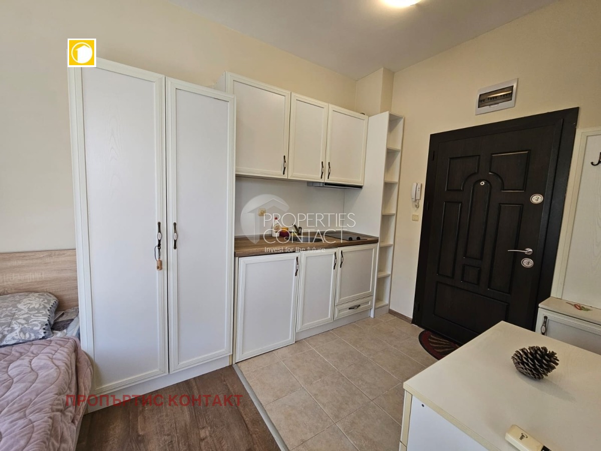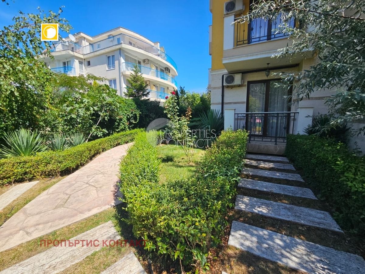 Предлагаме за продажба уютно студио в комплекс „Южна Звезда“ (South Star), разположен в популярния квартал Кокалу, в новата част на Несебър – само на 300 метра от плажа и на 50 метра от супермаркет. Характеристики на имота: Площ: 35 кв.м Етаж: 1 от 5 Състояние: напълно завършен, до ключ Обзавеждане: има мебели и техника Отопление: климатик Такса поддръжка: 300 евро/годишно Акт 16 – получен Паркинг и асансьор ? Разпределение: Просторна стая с кухненски кът и зона за спане Баня с тоалетна Тераса с достъп към вътрешния двор Удобства в комплекса: Затворена, добре поддържана територия Зелена зона и ландшафтен дизайн Зона за отдих и барбекю Детска площадка Видео наблюдение и паркинг Локация: Комплексът се намира в оживен и целогодишно населен район, близо до аквапарк „Парадайз“, автобусна спирка, магазини и ресторанти – отлично място както за постоянно живеене, така и за ваканционен имот на морето.
