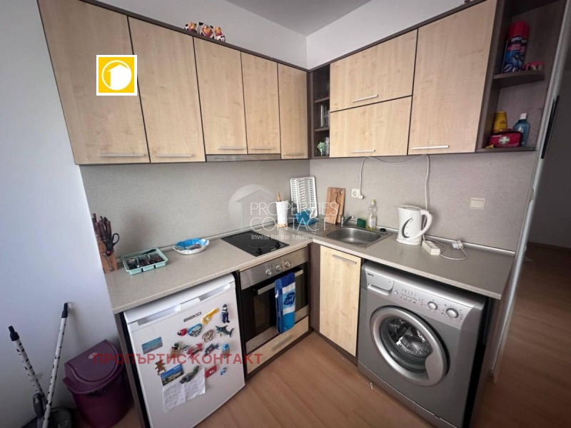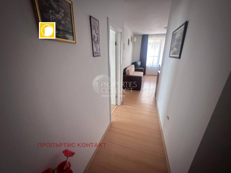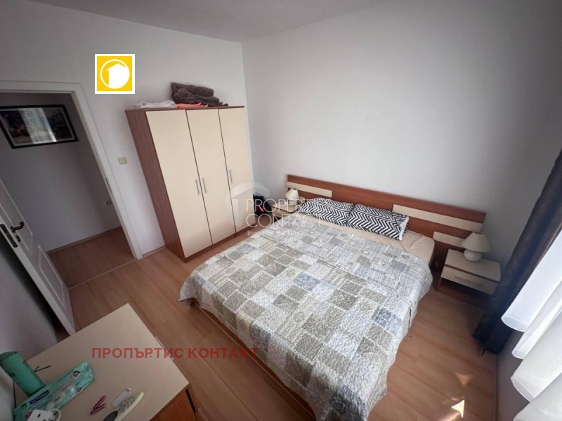 Площ: 65 кв.м Етаж: 2 Разстояние до морето: 3–4 км Тип имот: Тристаен апартамент Състояние: Напълно обзаведен и готов за нанасяне Такса поддръжка: 580 евро/година Акт: 15 Описание: Предлагаме за продажба обзаведен тристаен апартамент в добре поддържания комплекс „Съни Дей 5“, разположен само на няколко километра от морето и центъра на Слънчев бряг. Жилището е с площ от 65 кв.м, намира се на 2-ри етаж и е в отлично състояние. Апартаментът се състои от: всекидневна с кухненски бокс и трапезария, две самостоятелни спални, баня с тоалетна, балкон, коридор. Продава се напълно обзаведен и оборудван: кухня с хладилник, пералня, микровълнова печка, електрически котлони и аспиратор; във всекидневната — диван, гардероб, маса със столове. Удобства в комплекса: Открити басейни с детска секция Ресторант и супермаркет Рецепция и охрана Тенис корт, футболно и баскетболно игрище Детска площадка и зелени площи Паркинг Локация: Комплексът е разположен в тих район на около 3 км от морето и 5 км от центъра на Слънчев бряг и Несебър. Подходящ е както за постоянно живеене, така и за инвестиция с висок потенциал за отдаване под наем.