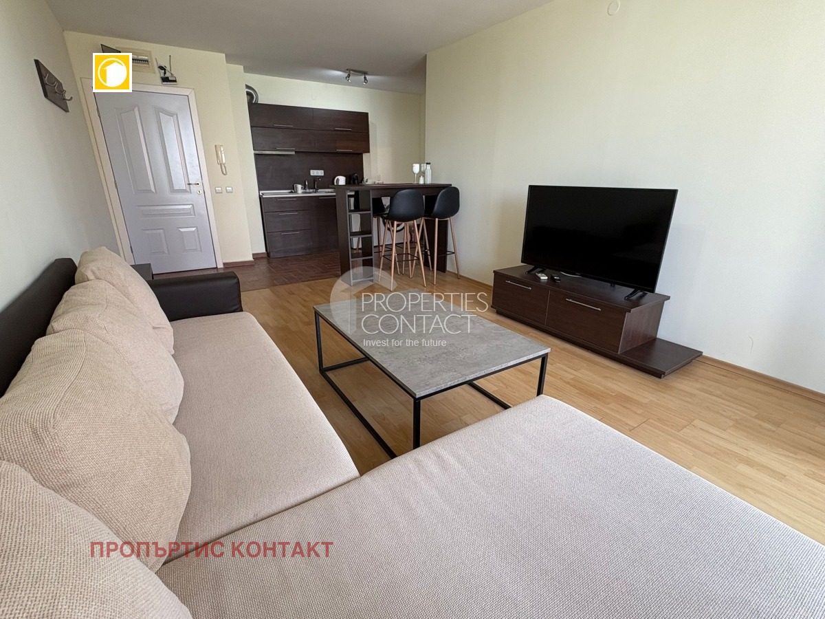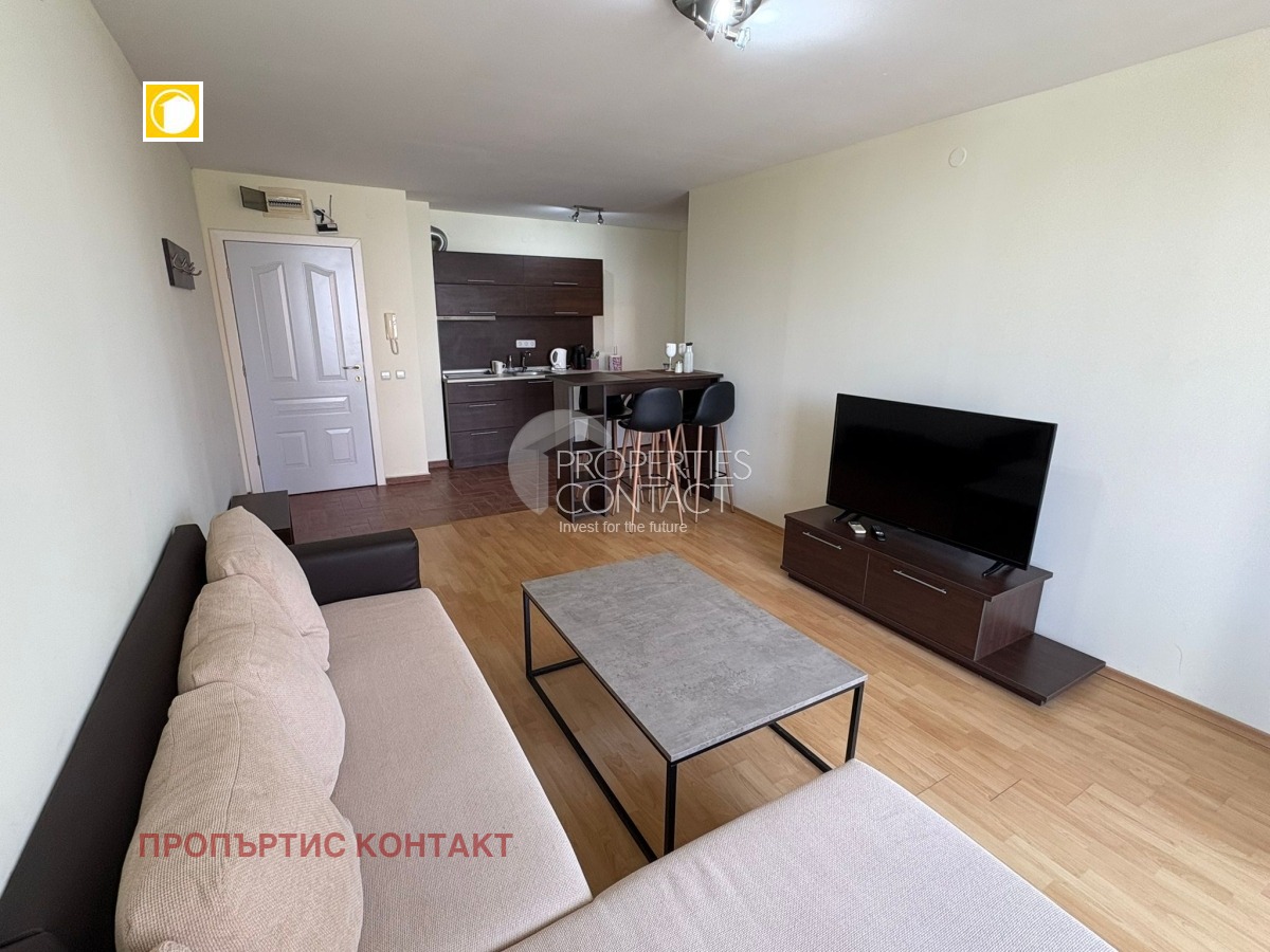 Предлагаме за продажба двустаен апартамент с площ 70 кв.м, разположен на 2-ри етаж в комплекс Панорама Форт Нокс, Свети Влас. Апартаментът е напълно обзаведен и оборудван, готов за живеене или отдаване под наем. Характеристики на имота: Площ: 70 кв.м Етаж: 2 Разпределение: антре, хол с кухненски бокс, спалня, баня с тоалетна, просторна тераса с гледка към парка и странична гледка море Обзаведен с мебели и техника Удобства в комплекса Форт Нокс Гранд Ризорт: 15 басейна за възрастни и деца 2 ресторанта, супермаркети и магазини Детски площадки и зелени зони за отдих Зона за барбекю 3 паркинга Автобусна спирка пред комплекса Локация: 1,5 км от Свети Влас 2 км от Елените На първа линия до морето Такса поддръжка: 14,5 €/кв.м годишно ? Подходящ за целогодишно живеене, ваканционен имот или инвестиция с добра доходност.