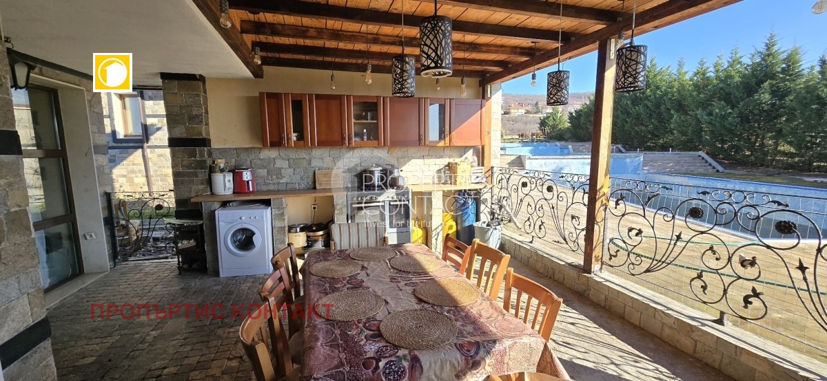 Представяме за продажба стилно обзаведена двуетажна къща в престижния комплекс "Чери Гардън", разположен в тих и живописен район, само на 4 км от красивите плажове на Слънчев бряг. Тук ще откриете уют, спокойствие и удобства, съчетаващи традиционна българска архитектура с модерен комфорт. Къщата в комплекс "Чери Гардън" в Кошарица е с площ от 180 кв.м, разполага с просторна дневна с камина, обединена с трапезария и напълно оборудвана кухня. Голямата покрита веранда предлага идеално място за почивка и приятни моменти на открито. На първия етаж са разположени също мокро помещение, тоалетна и складово пространство. На втория етаж ще откриете две уютни спални,едната от тях със самостоятелна баня с тоалетна и вана и отделна баня с тоалетна в коридора. Терасата тип лоджия разкрива красива гледка към околността, създавайки усещане за спокойствие и близост до природата. Комплексът предлага целогодишна охрана и поддръжка, два открити басейна и удобни паркинги за собствениците. Тук ще намерите идеалното място за пълноценен живот или незабравими ваканции. Свържете се с нас за повече информация и оглед!