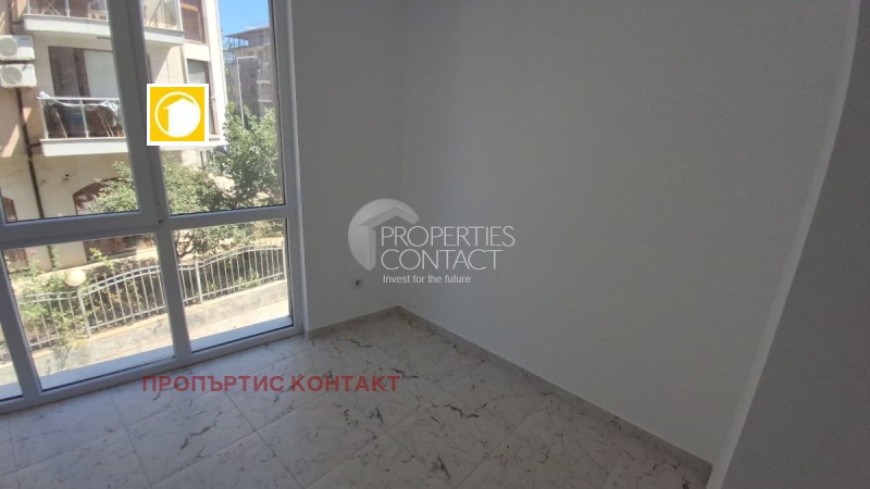Продаваме нов двустаен апартамент в комплекс с Акт 16, разположен само на 400 м от плажа в района на хотел Континентал, Слънчев бряг. Мястото е тихо и комуникативно, в пешеходна близост до плажната ивица, крайбрежната алея, супермаркети, автобусна спирка, ресторанти и кафенета. Разстоянието до Несебър е около 15 минути. Апартаментът се намира на 2 етаж и разполага със собствен озеленен двор. Общата площ е 55 кв.м. Разпределение: Коридор Всекидневна с кухненска зона Спалня Баня с тоалетна Веранда с излаз към двор Апартаментът се продава завършен до ключ с луксозно завършена и оборудвана баня с тоалетна.
