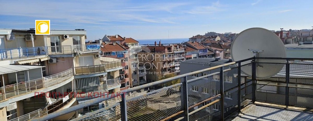 Предлагаме за продажба просторен тристаен апартамент с панорамна гледка към морето, разположен в пететажна сграда в стария град Поморие. Жилището е с площ от 116 кв.м и се намира на пети етаж. Апартаментът включва коридор, кухня, дневна, две спални, помощно помещение , голяма тераса, от която се разкрива невероятен изглед към морето. Имотът се продава с наличните мебели и техника. Тристайният апаратмент се намира в жилищна сграда в Поморие е с отлично местоположение,в района на Софармаси, само на една минута пеша от плажа, което я прави идеална както за постоянно живеене, така и за ваканционен дом.Цялата инфрастурктура на града е на пешеходно разстояние.