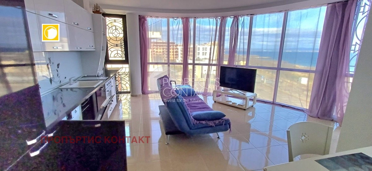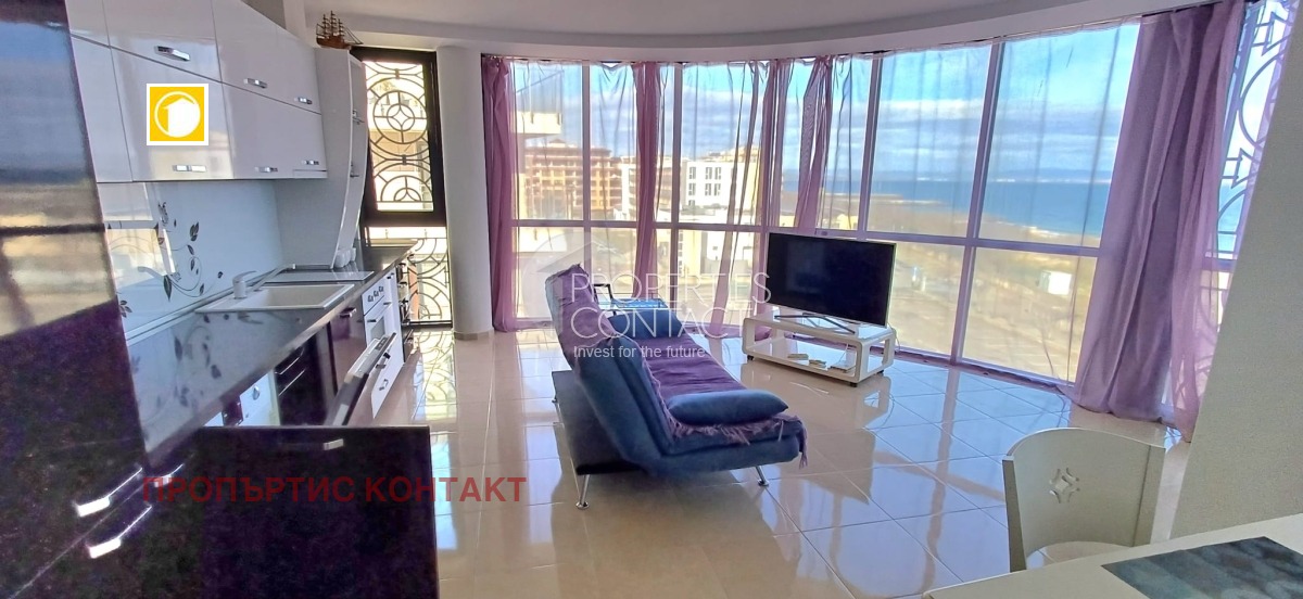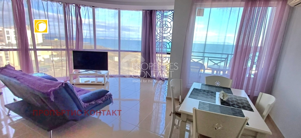 Адрес: ул. Хан Телериг, Поморие Продава се тристаен апартамент с панорамна гледка море, разположен на 5 етаж (непоследен) в жилищна сграда с асансьор и басейн. Характеристики: Площ: 96 кв.м Разпределение: коридор, всекидневна с камина и кухня, 2 спални, голяма тераса с фронтална морска гледка, баня с тоалетна Подово отопление Луксозно обзавеждане и техника Такса поддръжка: само 150 €/годишно Сградата е с Акт 16 Възможност за ипотека ? Отлична инвестиция за целогодишно живеене, ваканционен имот или отдаване под наем.