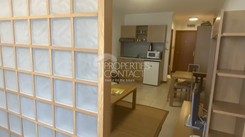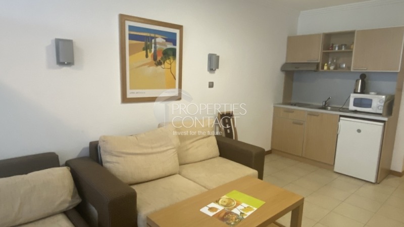 Продава се просторно и комфортно студио в елитния комплекс „Емералд“ в Равда, разположен на първа линия с невероятна гледка към морето. Студиото се намира на четвъртия етаж и е с обща площ от 60,40 кв.м (чиста площ 46,51 кв.м). и има следното разпределение входно антре, голямо помещение с обособени кухненска и спална зона, санитарен възел и тераса, която предлага възможност да се насладите на прекрасния морски изглед. Жилището се продава напълно обзаведено с мебели и техника, което го прави готово за живеене или отдаване под наем. Комплекс „Емералд“ е разположен на брега на морето, съвсем близо до центъра на Равда. На територията на комплекса се предлагат такива удобства като: закрит и няколко открити басейна, модерен СПА център, детски кът, тенис кортове и паркинг, поддтржана зелена територия, с контролиран достъп.