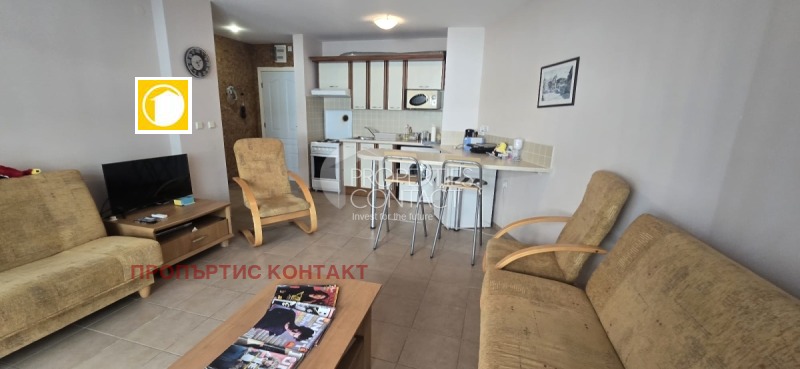 Предлагаме за продажба просторен и напълно обзаведен двустаен апартамент, разположен в популярния морски комплекс Privilege Fort Beach, на първа линия до плажа Робинзон в Елените, в близост до Свети Влас и Слънчев бряг. Имотът се намира на първи етаж и е с обща площ от 72 кв.м. Състои се от входно антре, светла дневна с кухненски кът, спалня, баня с тоалетна и тераса с прекрасна гледка към добре поддържаните зелени площи и към морето. Апартаментът се предлага напълно обзаведен и оборудван, в отлично състояние, готов за нанасяне или отдаване под наем. Комплекс "Провилидж Форт Бийч" е разположен в непосредствена близост до красив пясъчен плаж, автобусна спирка, супермаркет и аква парк. Той предлага отлично поддържана територия с разнообразни удобства за отдих и релаксация, включително басейни, спа център, фитнес, заведения, търговски обекти и услуги, осигуряващи комфортно пребиваване през цялата година. Този апартамент е отличен избор за ваканционен дом, целогодишно живеене или инвестиция с висок потенциал за доход от наем.