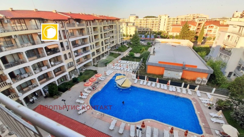 Продава се просторно обзаведено студио в комплекс Роял Дримс, в близост до плажа и град Слънчев бряг. Студиото се намира на 3-ти етаж в сграда с асансьор . Жилището е с обща площ от 42 кв.м. и има доста функционално и удобно разпределение: кухненска зона , отделна зона за сън и почивка, тераса с изглед към тихата страна на комплекса. Продава се с мебели и техника. Комплекс "Роял Дриймс" се намира на 250 метра от плажа, в район с добра комуникация. В непосредствена близост до комплекса се намира голям супермаркет "Алдо" както и и други магазини, на 50 метра има автобусна спирка. До стария Несебър може да се стигне пеша за 10 минути. Територията на комплекса е много добре поддържана и предлага следните удобства : - Плувен басейн; - детски басейн; - Охрана; - Видео наблюдение; - Рецепция; - Фитнес; - Детска площадка; Такса поддръжка 8Е/м2 за година . Отделни партиди за ток.
