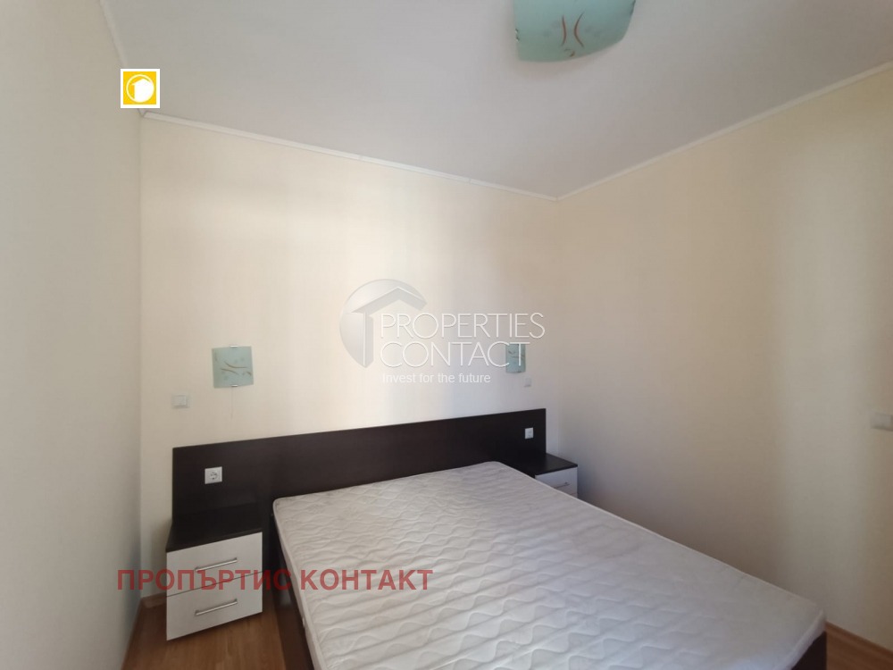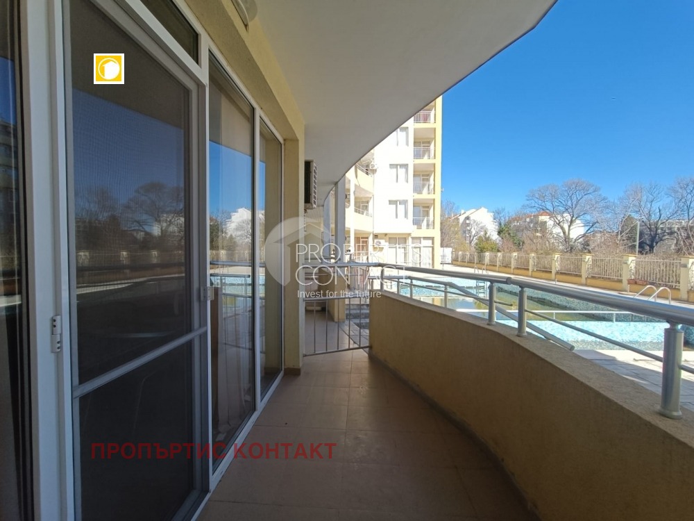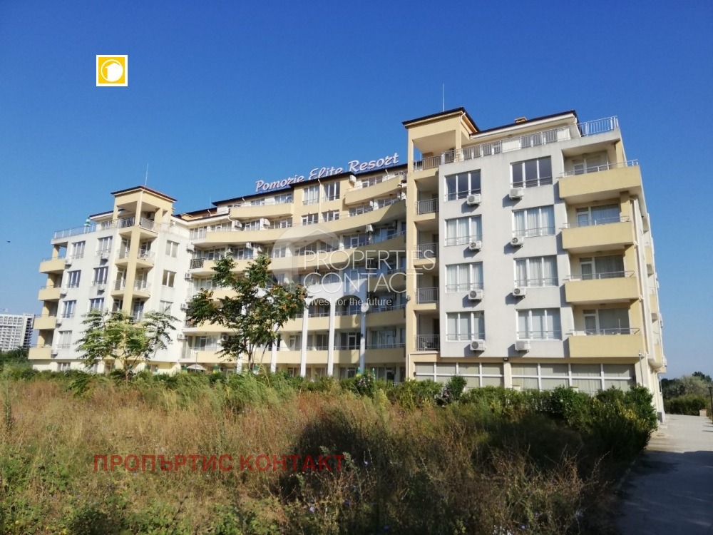 Продава се двустаен апартамент в жилищен комплекс, в непосредствена близост до южния плаж в град Поморие. Жилището е много светло и просторно , намира се на 1-ви висок етаж , с площ от 65м2. Състои се от входно антре, баня с тоалетна и вана, дневна с кухненски бокс, спалня, голяма тераса с директен излаз към басейн. Изложение - юг. Жилището е просторно и слънчево, продава се с мебели и техника. Разстояние до плажа е 150 метра , има пряка улица, която води до Южния плаж. Сградата разполага с открит басейн и 24-часова охрана. Паркирането в района е свободно и безпроблемно. Наблизо е разположен голям летен аквапарк, манастир „Св. Георги“, множество магазини, ресторанти и услуги. Автогарата е на 5 минути пеша. Районът е тих и спокоен.