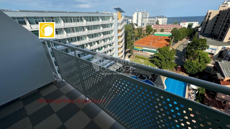 Изгодна продажба на обзаведен двустаен апартамент с гледка море в хотелски комплекс Нирвана на втора линия от източната част на Слънчев Бряг. Двустайният апартамент е с обща площ от 102,96 кв.м. и се намира на 7-ми/ последен/ етаж . Комплексът разполага с 3 асансьора. Имотът се състои от коридор,баня с тоалетна,вана и душ кабина, дневна с кухненски бокс, спалня,гардеробна,просторна тераса с прекрасен изглед към морето. Апартаментът се продава изгодно напълно обзаведен и оборудван,в отлично състояние. Комплекс Нирвана се намира в източната част на Слънчев Бряг ,в района на хотел Барсело,на 50 м от плажа и на 5 минути пешеходно разстояние от центъра на курорта. Удобства в комплекса: открит басейн,рецепция,охрана,ресторант, кафе,открит паркинг.Акт 16. Двустайният апартамент,който предлагаме за продажба ,близо до плажа в Слънчев Бряг е отлична възможност за инвестиция, отдаване под наем или за летен отдих.