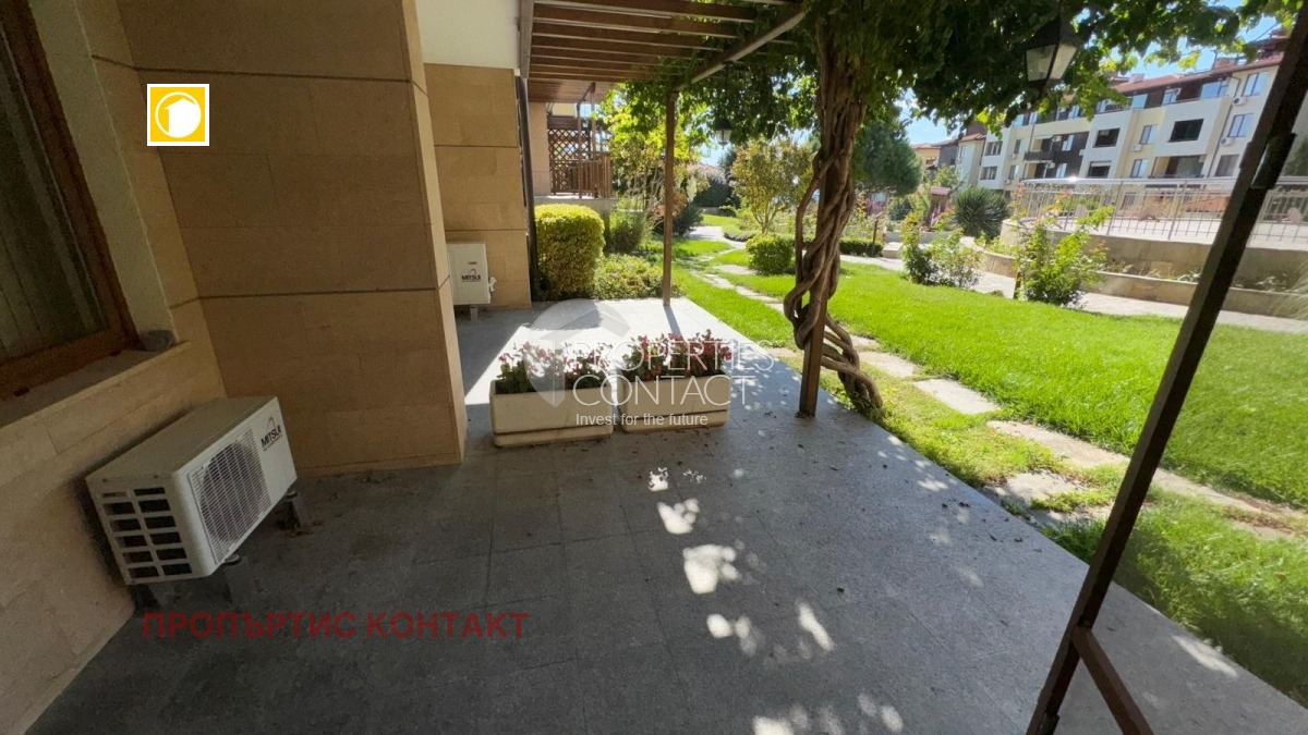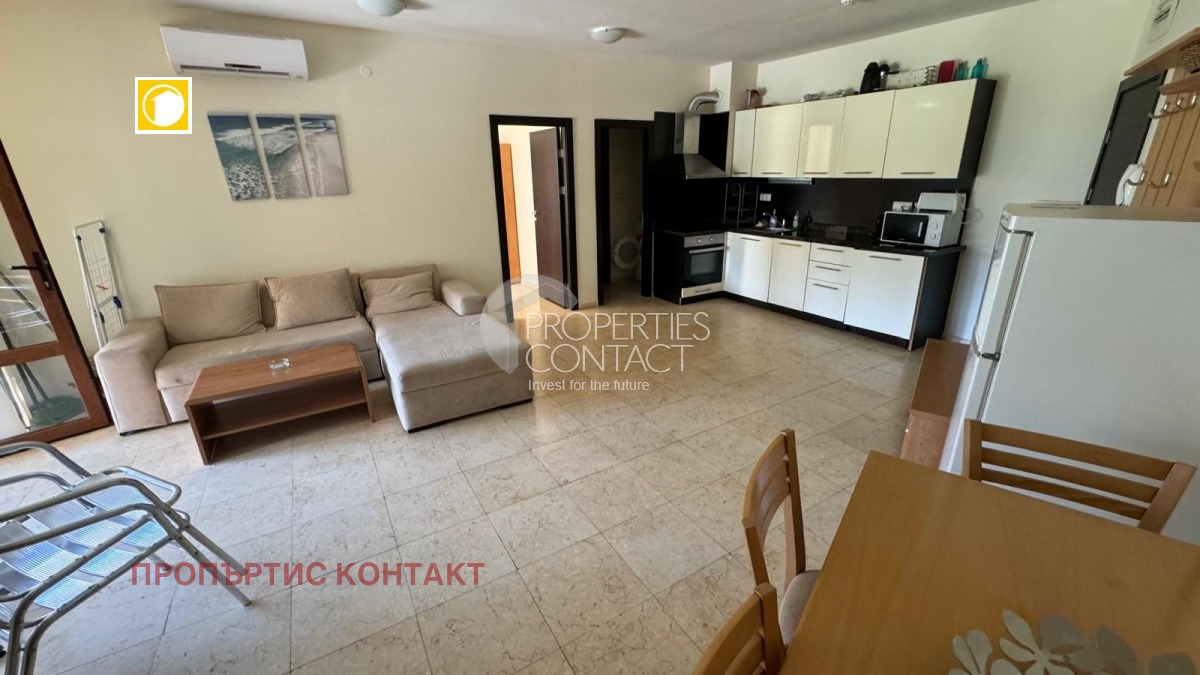 Предлагаме за продажба просторен тристаен апартамент в комплекс "Райска градина", разположен на първа линия в Свети Влас. Апартаментът се намира на партерен етаж и е с площ от 100 кв.м, като разполага с голяма тераса-тип веранда с изглед към басейна. Жилището се състои от просторна всекидневна с кухненски бокс, две спални, мокро помещение, две бани с тоалетна и вана, и тераса. Имотът е в отлично състояние и се продава напълно обзаведен с мебели и електроуреди. Комплекс "Райска градина" се намира на първа линия в Свети Влас и разполага със собствен плаж ,богато озеленена територия . Удобствата включват открит паркинг, рецепция, три ресторанта, седем открити и един закрит басейн, СПА-център с парна баня, сауни, джакузи, солариум, масажен салон, фризьорски и козметичен салон, фитнес, тенис кортове, игрища за футбол и волейбол, детски клуб, медицински център и безплатен подземен паркинг на четири нива. Тристайният апартамент е подходящ както за целогодишно живеене, така и за отдаване под наем.