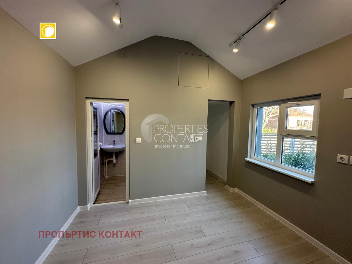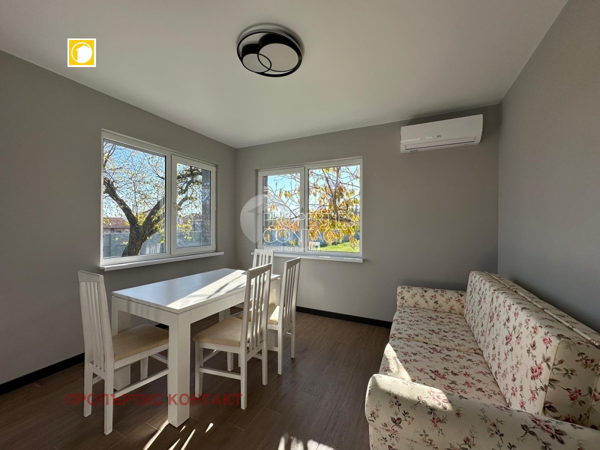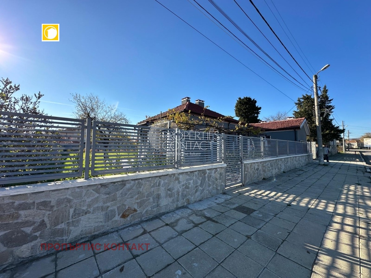 Предлагаме за продажба самостоятелна, реновирана едноетажна къща в центъра на село Гюльовца, разположена на 16 км от плажовете на Слънчев Бряг. Площта на къщатата е 108 кв.м, допълнена с пристройка за гости- 20 кв.м. Парцелът е с площ от 1100 кв.м. Разпределението на къщата включва : коридор, отделна кухня, дневна с трапезария, две спални, баня с тоалетна, както и пристройка със спалня и баня с тоалетна. Всички постройки са узаконени, а имотът е изцяло обновен с външна изолация, нови електро- и ВиК инсталации, подменена дограма и стабилна бетонна основа. Покривът е изцяло обновен, а в двора е изградена широка бетонна настилка. Къщата,близо до плажа се продава с изцяло ново обзавеждане и техника. Дворът е изравнен и подготвен за озеленяване, разполага и с паркомясто. Село Гюльовца намира се на 16 км от к.к. Слънчев бряг и на 36 км от Бургас. Предлага удобства като магазини, училище, детска градина и целогодишен обществен транспорт.