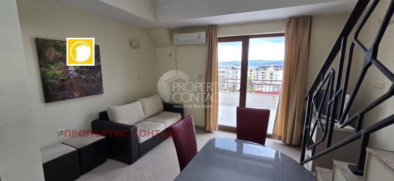 Предлагаме за продажба уютен апартамент с две спални, разположен в комплекс "Summer Breeze" в Слънчев бряг. Имотът се намира на тихо и удобно място – в близост до автобусна спирка и само на кратко разстояние от плажа. Апартаментът е разположен на пети и шести етаж и е с обща площ от 131,65 кв.м. Имотът има следното разпределение: Първо ниво: просторна дневна с кухненски бокс, една спалня, баня с тоалетна и душ кабина, както и тераса; Второ ниво: една спалня с баня и тоалетна. Имотът се продава напълно обзаведен и оборудван, включително с всички необходими електроуреди. Изложението е север, което осигурява естествена светлина през целия ден. Комплекс "Саммър Брийз" предлага отлични условия за почивка и отдих – на разположение са открит басейн за възрастни и деца, озеленени площи, охраняем паркинг и екип за поддръжка. Районът съчетава близостта до всички забавления и удобства на курорта със спокойна атмосфера. В непосредствена близост се намират два супермаркета и множество заведения за хранене.