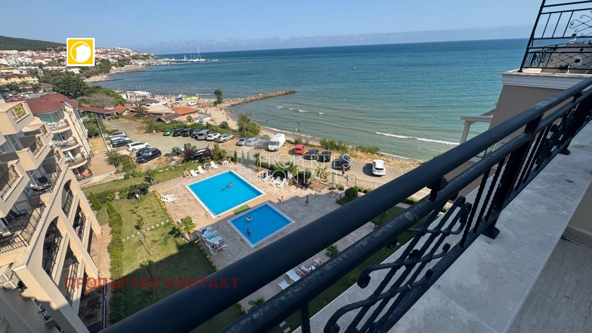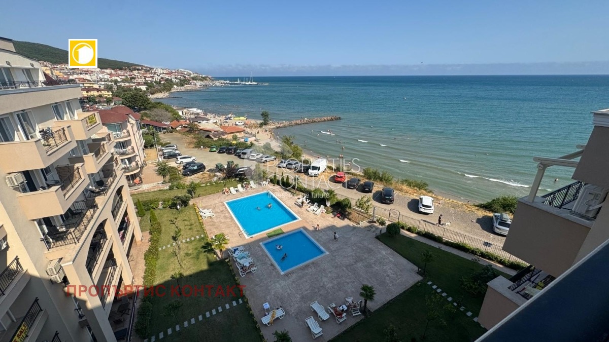 Продава се стилен и светъл двустаен апартамент в България, разположен в луксозния комплекс "Ипанема Бийч", който се намира на първа линия море в престижния курорт Свети Влас. Жилището се намира на 6-ти етаж и е с обща площ от 72,64 кв.м. Състои се от входно антре, просторна дневна с кухненски кът, уютна спалня, баня с тоалетна и две тераси- с изглед към планината и с фронтална гледка към морето и басейна. Панорамата към залива е изключителна – съчетава спокойствието на морския хоризонт с гледка към поддържаната зона на комплекса. Апартаментът се продава "до ключ", с качествено завършени подови настилки, боядисани стени и напълно оборудвана баня с тоалетна, готов за обзавеждане по вкус на новия собственик. "