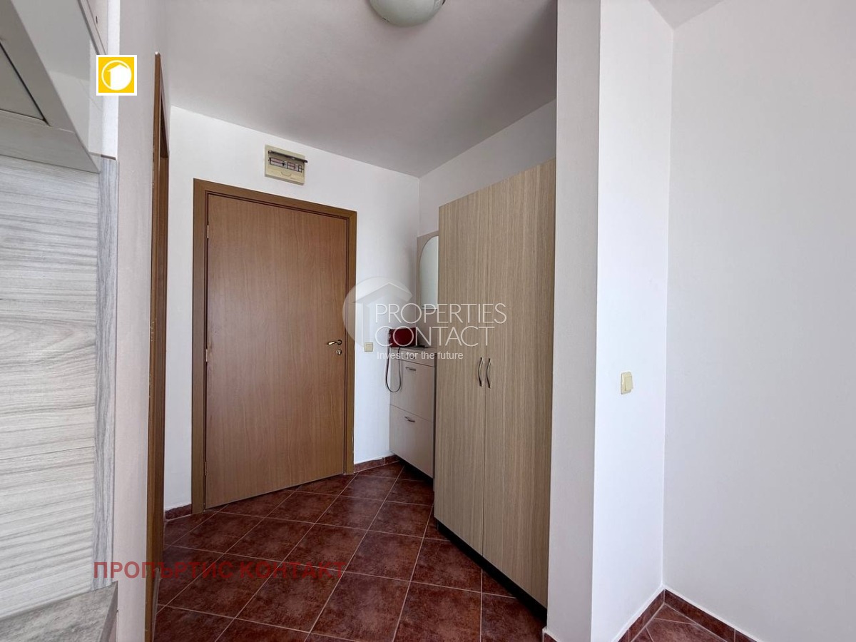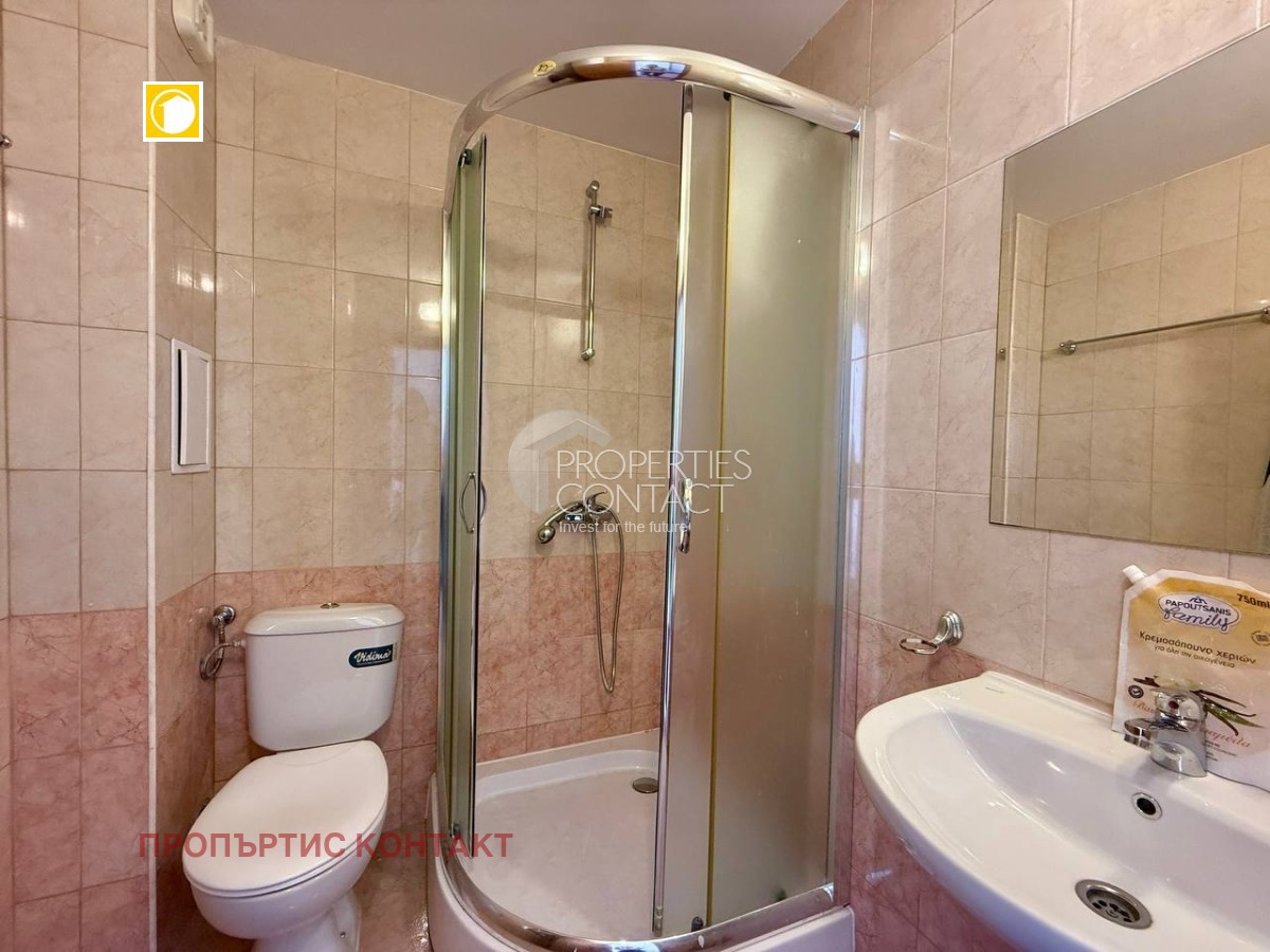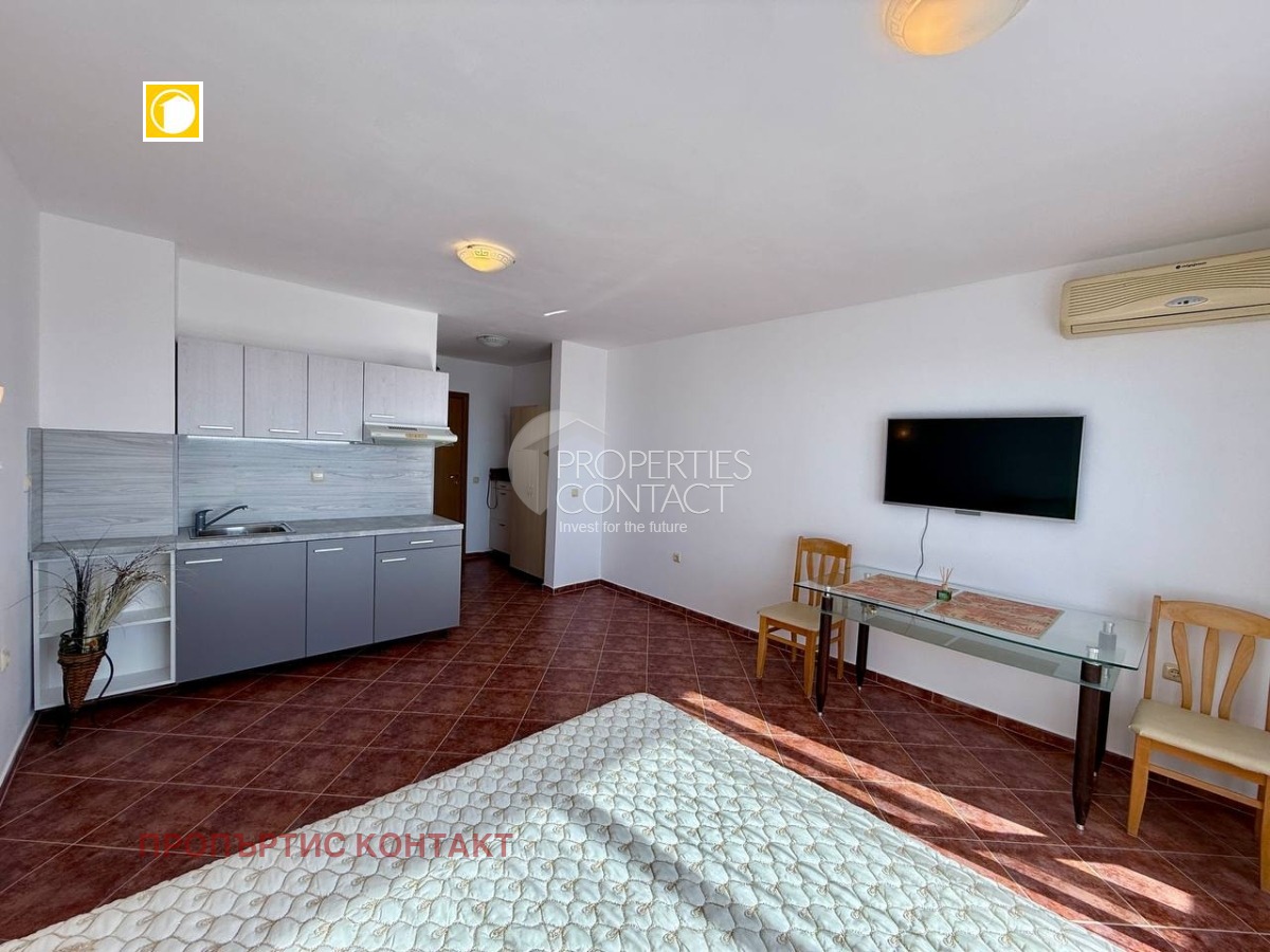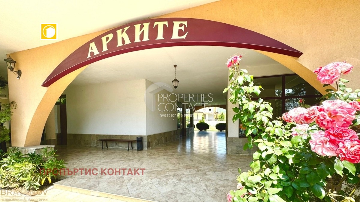 Предлагаме за продажба обзаведен едностаен апартамент в жилищен комплекс “Арките”, разположен в местността Чолакова чешма, във вилната зона на село Кошарица, само на 2 км от плажа. Апартаментът е с площ 38 кв.м, намира се на 3-тия от общо 3 етажа. Сградата е въведена в експлоатация (Акт 16). Разпределение: Входно антре Баня с тоалетна и душ кабина Всекидневна с кухненски бокс и трапезария Зона за отдих с диван Тераса Апартаментът се продава напълно обзаведен и оборудван с мебели и техника. Подходящ е за целогодишно живеене, лятна почивка или отдаване под наем. Удобства в комплекса: Рецепция 24-часова охрана Ресторант и кафене Олимпийски басейн + отделен детски басейн Фитнес зала Детска площадка Зала за тихи игри и тенис на маса Изкуствен водопад с каскада Много зелени площи Паркоместа Автобусна спирка пред комплекса Годишна такса поддръжка — 600 евро.