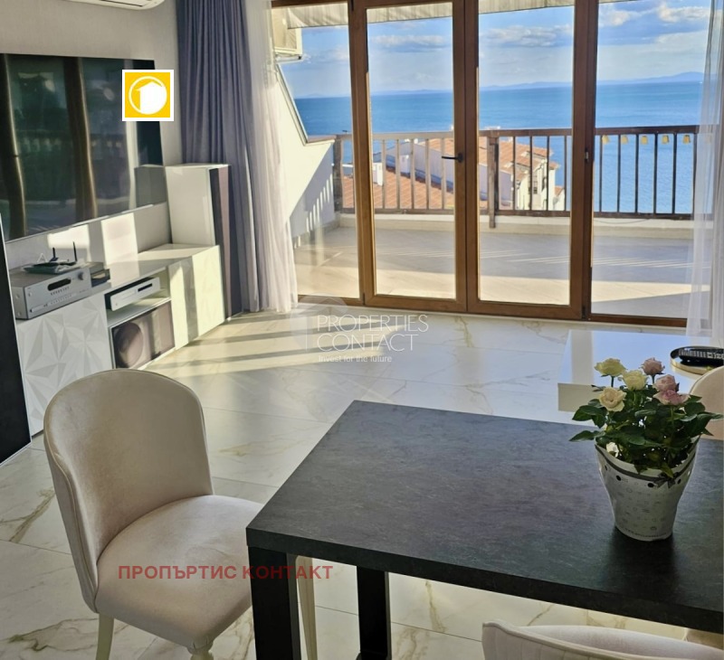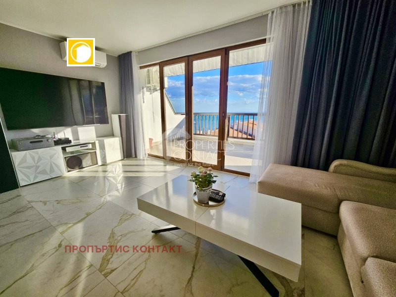 Предлагаме за продажба тристаен апартамент на първа линия море в Свети Влас, разположен в престижния комплекс „Сън Коуст“. Имотът впечатлява с фронтална гледка към морето, чисто ново обзавеждане и висококачествен евроремонт. Апартаментът е с площ от 119 кв.м, намира се на 4-ти етаж и е подходящ както за целогодишно живеене, така и за инвестиция с цел отдаване под наем. Разпределение: Просторна дневна с кухненски бокс и трапезария Две самостоятелни спални Баня с тоалетна Голяма тераса с директна морска гледка Жилището се продава напълно обзаведено, с всички необходими мебели и електроуреди, в отлично състояние – готово за нанасяне. Предимства на комплекса: Първа линия море Само на 300 метра от центъра на Свети Влас Открит басейн Супермаркет на територията Целогодишна охрана и видеонаблюдение Паркинг за собственици Не пропускайте възможността да закупите луксозен имот с морска панорама в Свети Влас – един от най-предпочитаните курорти по българското Черноморие!