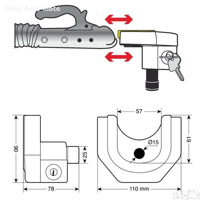 Универсален секрет за теглич Automat-Метален, 2 ключа