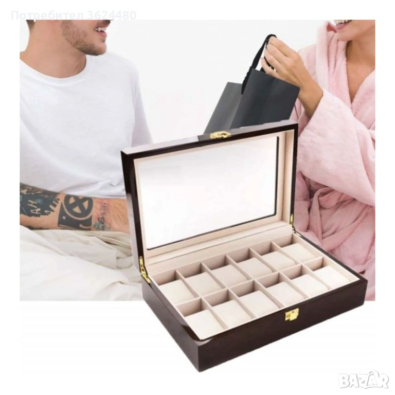 Търсите перфектния подарък за любител на часовниците? Нашата дървена кутия за 12 отделения е отличен подарък за ценители и колекционери, съчетаващ практичност и лукс. Проектирана с внимание към детайла, тя предлага сигурно място за Вашата колекция благодарение на премиум дървото с орехово покритие и стабилната си конструкция. Висококачествената подплата във всяко отделение гарантира максимална защита на Вашите ценни аксесоари, а прозрачният капак превръща съхранението в красива презентация.