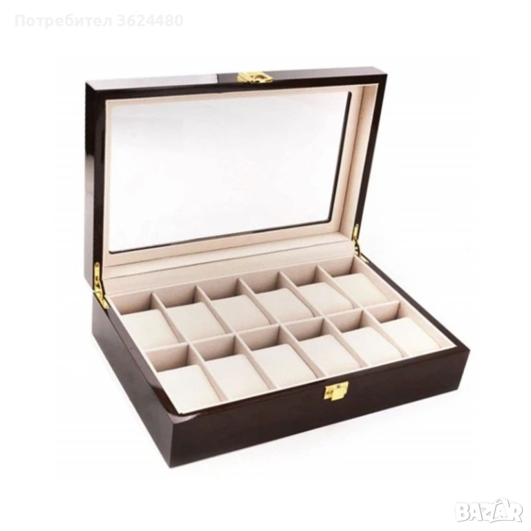 За ценителите, които притежават значима колекция, представяме нашата дървена кутия за часовници с орехово покритие. Този изискан аксесоар предлага 12 отделения, което го прави идеалното решение за големи колекции, изискващи специално отношение. Изработена от премиум дърво, кутията се отличава с дълбок орехов нюанс и прозрачен капак, позволяващ бърз преглед и ефектно излагане на Вашите часовници. Интериорът е завършен с висококачествена мека подплата, осигуряваща максимална защита срещу надраскване и прах. Това е едно луксозно допълнение към интериора, което подчертава стила на всеки дом или офис.