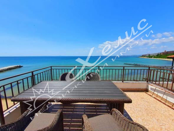 Просторен тристаен апартамент с фронтална гледка море, разположен в комплекс Месамбрия Форт, находящ се в живописния курортен комплекс Елените. Жилището е с площ от 113 кв. м. и е разположено на трети етаж. Състои се от всекидневна с кухненски кът, две спални, две бани с тоалетни и три тераси - всяка от тях с невероятна гледка към морето. Апартаментът се продава с обзавеждането. Такса поддръжка - 15Е/кв.м.