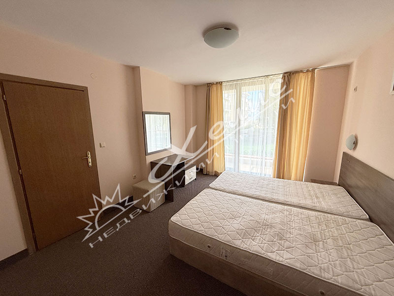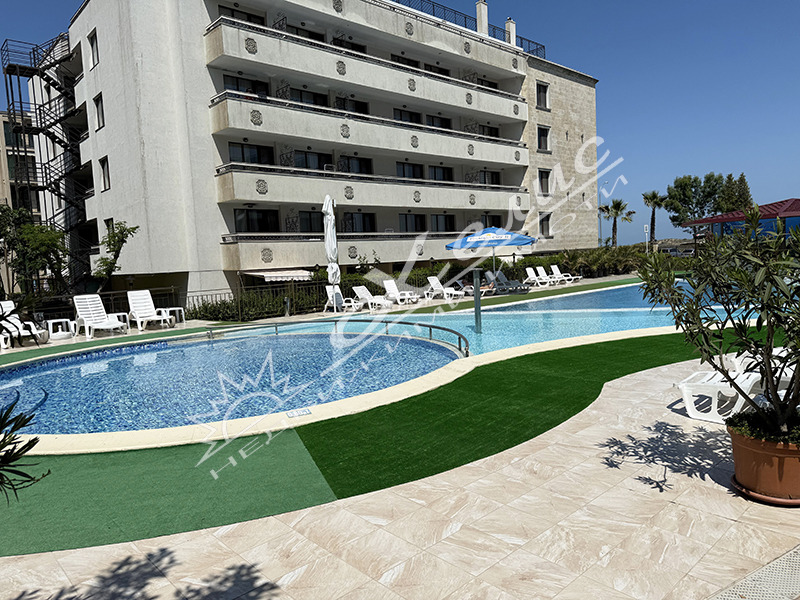 Тристаен апартамент, находящ се в гр.Приморско, до самите пясъчни дюни, на 50 метра от южния плаж. Апартаментът е с площ от 80 кв.м и е разположен на първи етаж. Състои се от всекидневна с кухненски кът, две спални, баня с тоалетна, тераса. Апартаментът се продава с обзавеждането. Комплексът разполага с ресторант, супермаркет, два басейна - за възрастни и за деца, детска площадка, паркинг, денонощна и целогодишна охрана.