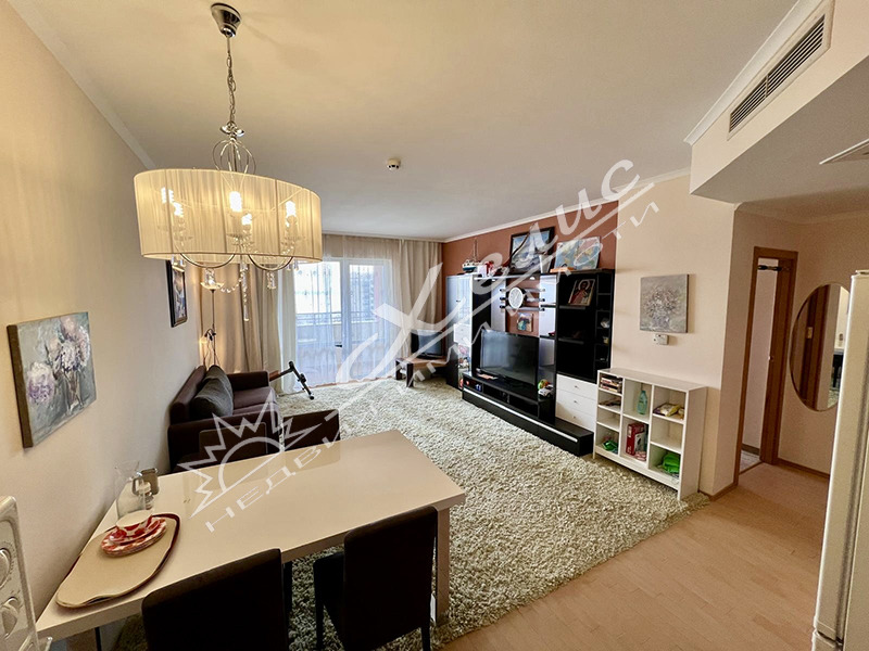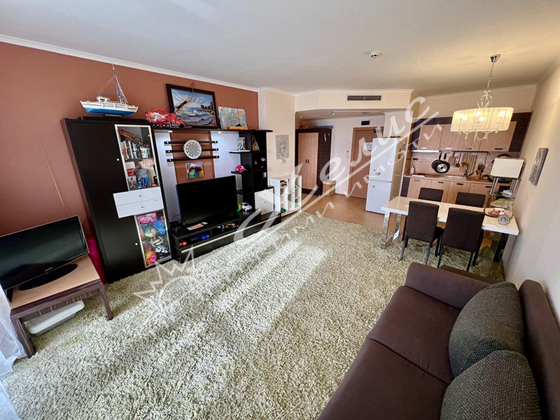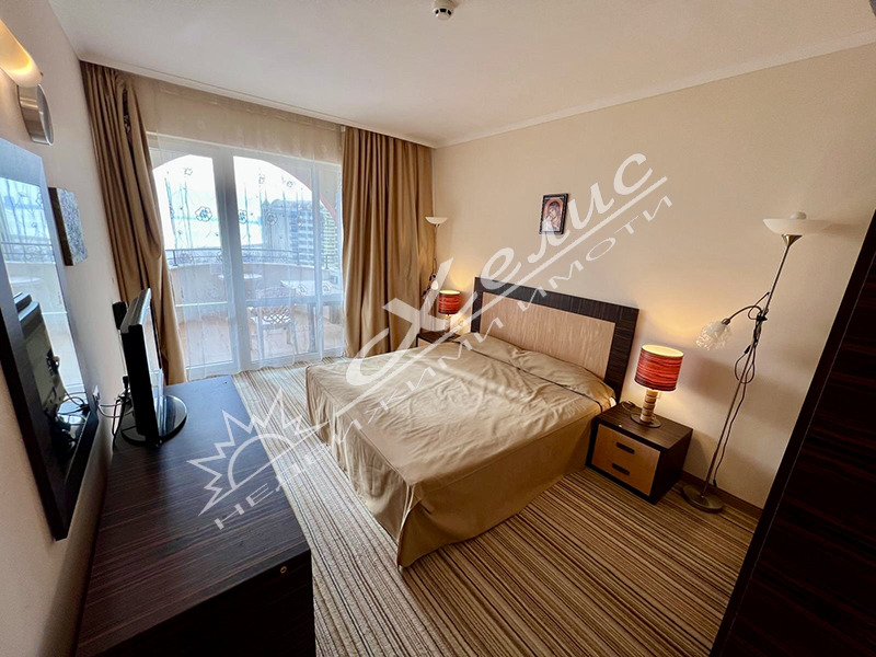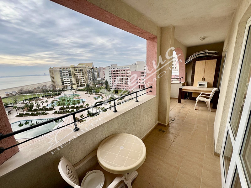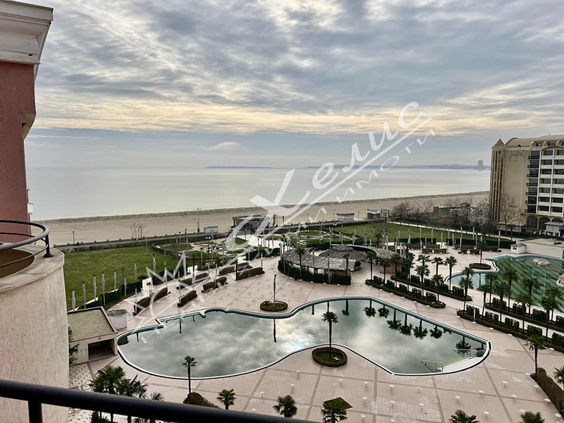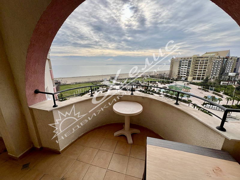 Двустаен апартамент в прекрасна гледка към морето в луксозния комплекс Маджестик, разположен на първа линия в к.к. Слънчев бряг. Апартаментът е с площ от 100 кв.м и е разположен на осми непоследен етаж. Състои се от просторна всекидневна с трапезария и кухненски кът, спалня, антре, баня с тоалетна, голяма тераса с излаз от двете стаи. Апартаментът се продава с обзавеждането.