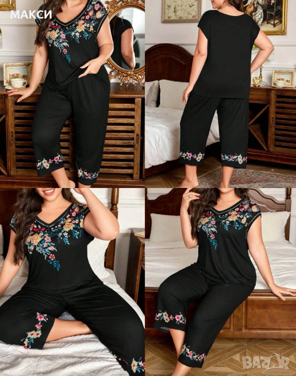 Макси чудесен силно еластичен и мек комплект/пижама/ - тениска без ръкави + 7/8 долнище с ластична в