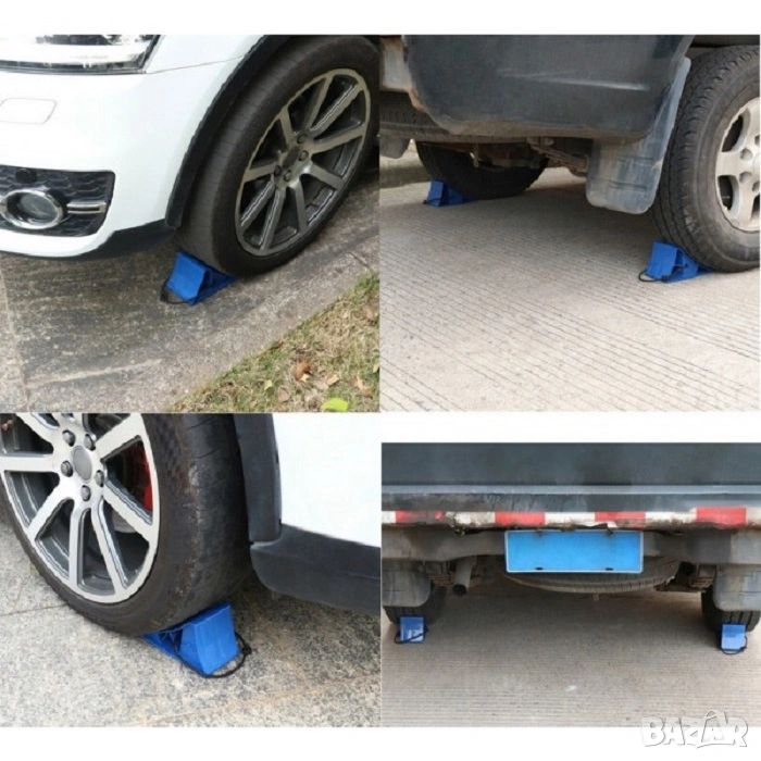 Подходящи за всички леки и лекотоварни автомобили! Изключително удобни за стопиране на автомобила при авариен ремонт или смяна на гуми, когато не е възможно използването на ръчната спирачка!