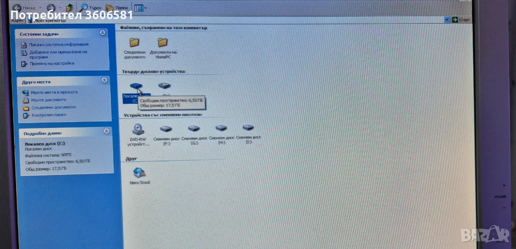 • Сменяеми дискове: Локален диск (С:), Сменяем диск (G:), Сменяем диск (H:).