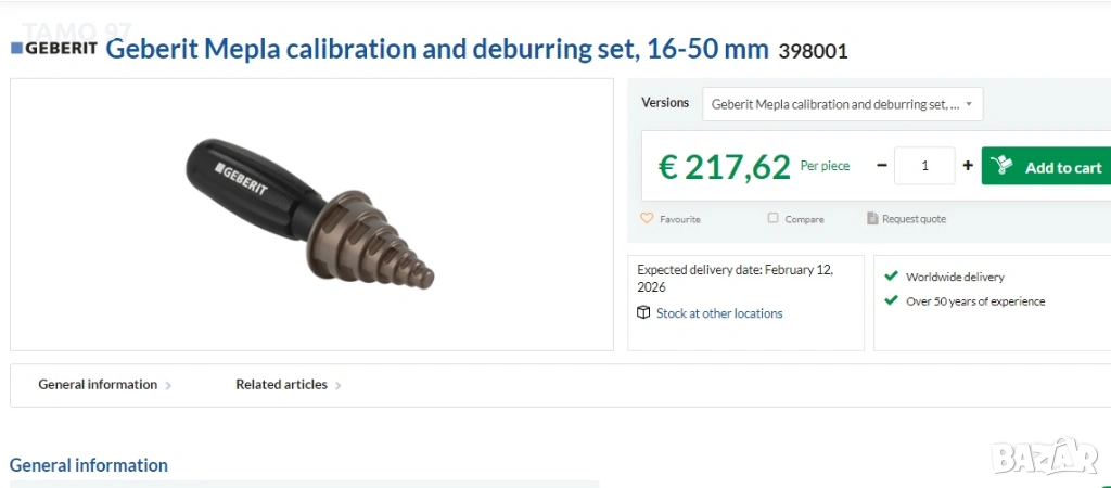 Продавам професионален калибратор на Геберит за калибриране и отнемане на фаски от ПВЦ (PE-X) тръби с диаметър 16-50 мм. Калибратора е перфектен без наранявания и изключително подходящ за фирми, занимаващи се с ВиК и отоплителни инсталации. Оригинално немско производство, внос от Франция. Пращаме с преглед и тест с куриерска фирма еконт може и лично предаване за гр. Шумен. Магазинската цена е: 217.62евро