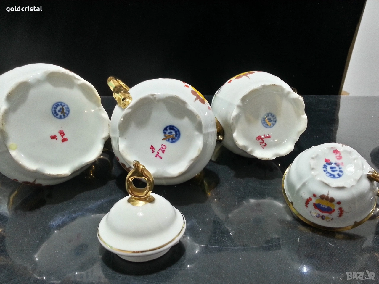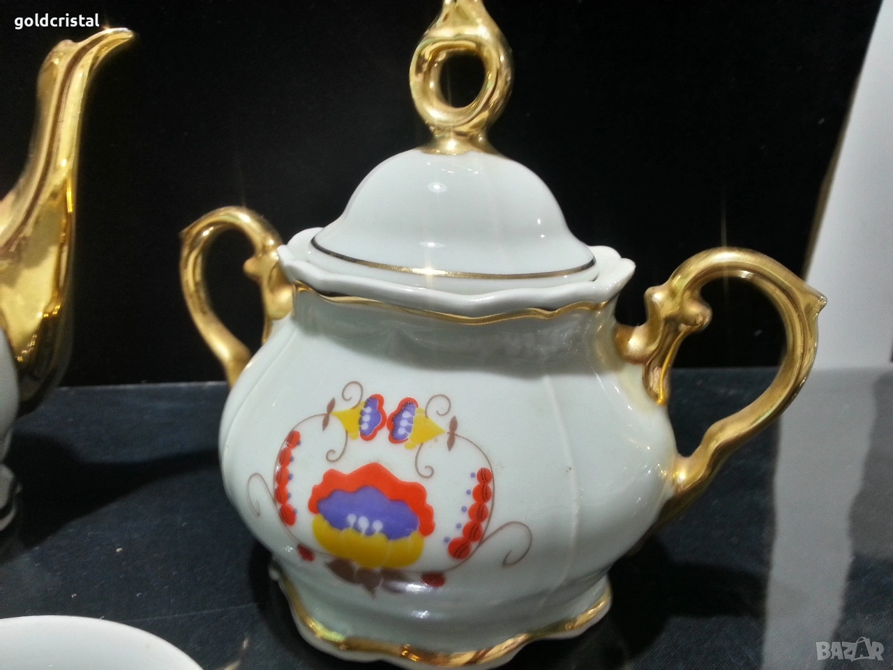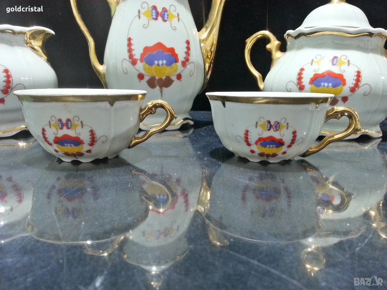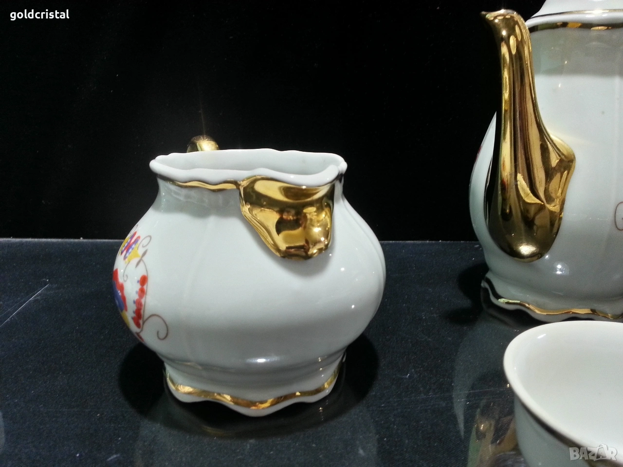 Стар български порцелан барок чайник заханица латиера и две чашки за кафе без забележки сервиз комплект сет лот ретро арт декор винтидж колекция стари старинни антикварни предмети обзавеждане за дома и семейството подходящи за подарък за ценители и колекционери