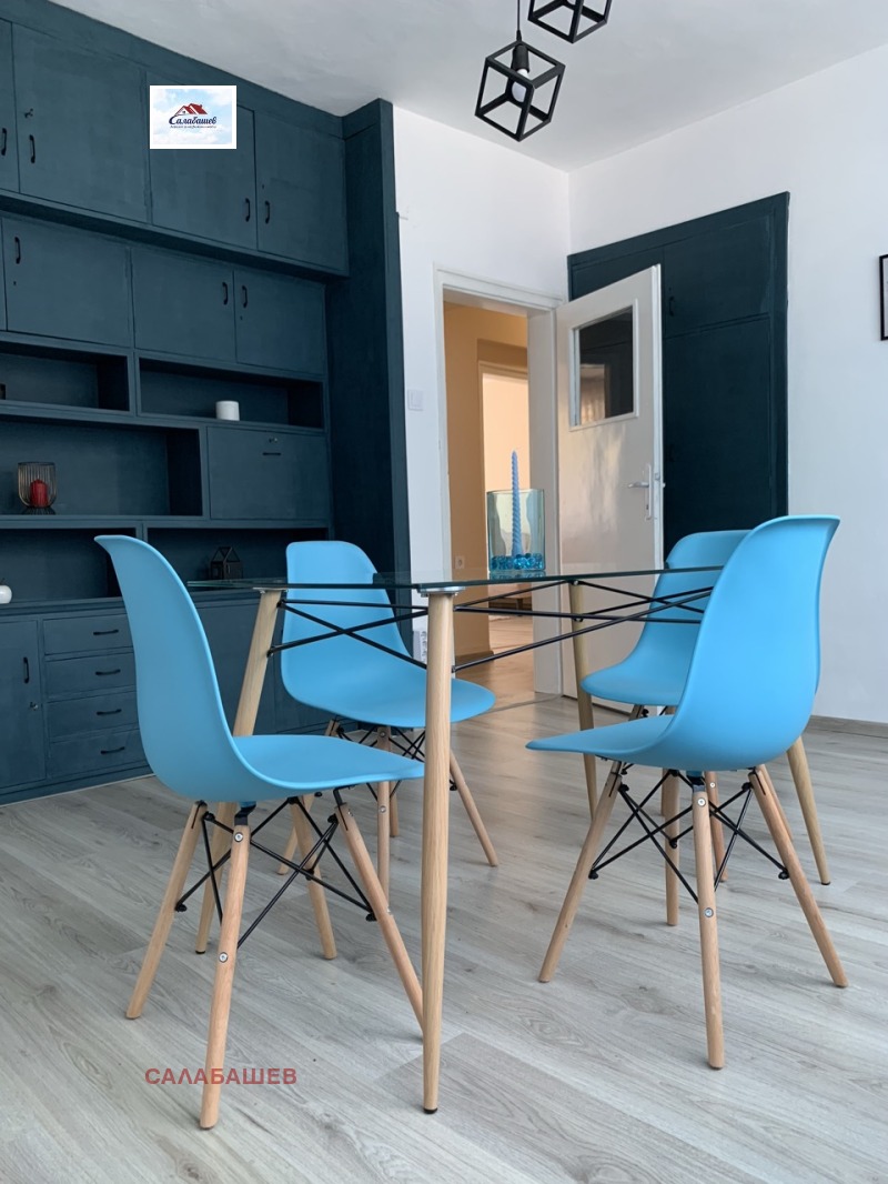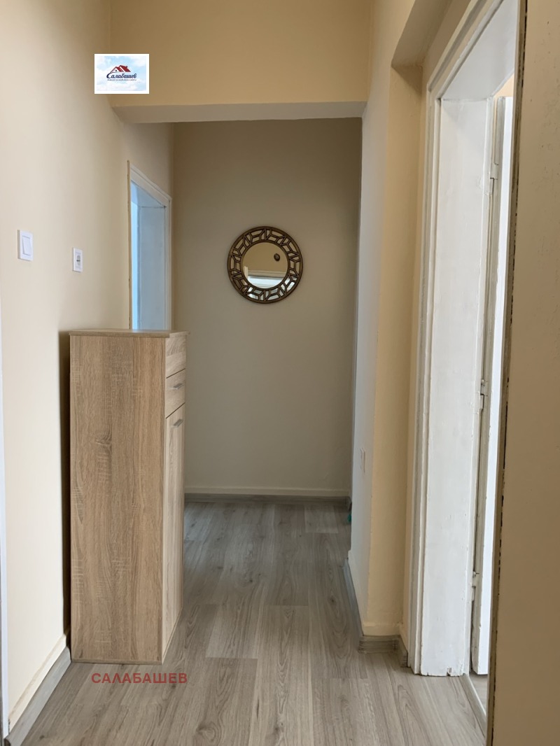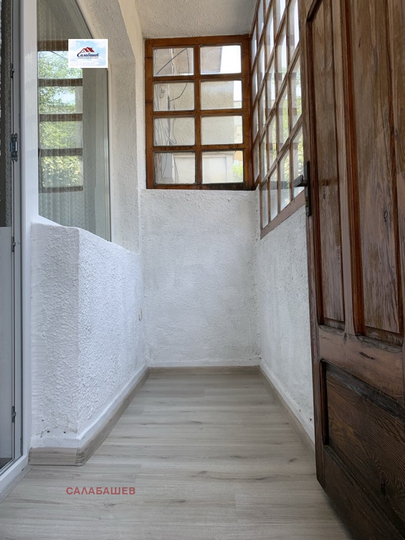 Агенция Салабашев предлага тристаен апартамент в центъра на град Пазарджик, в близост до театъра. Жилището е с чиста площ от 85.12 кв.м. и се състои от всекидневна, кухня с трапезария, спалня с вграден гардероб, баня с тоалетна, две тераси и коридор. Апартаментът се намира на първи етаж в пететажен тухлен блок. Към жилището има избено помещение с площ от 10,16 кв.м. Изложението е Север Юг. Апартаментът е с изцяло подменена дограма. Подовата настилка в цялото жилище е нов ламиниран паркет. Паркирането пред блока е решено с паркинг само за живущи. Апартаментът разполага и с отделен вход.