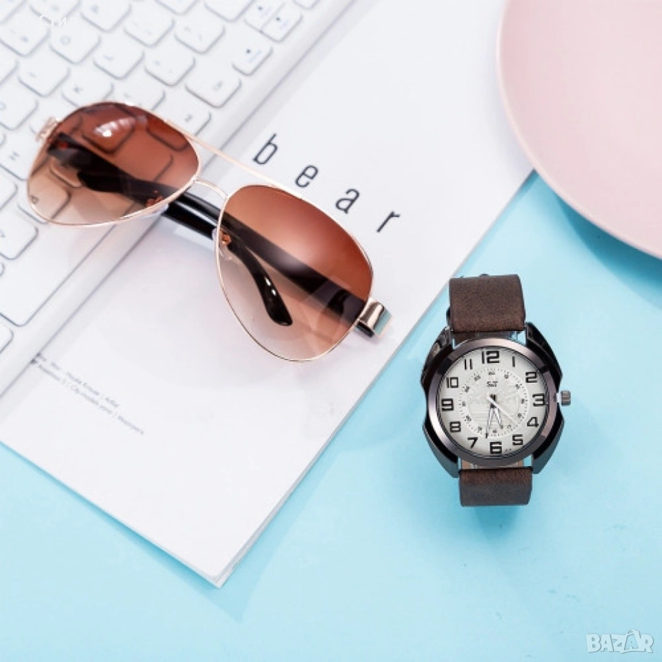 Мъжки подаръчен комплект, красиво опакован ръчен часовник и комплект слънчеви очила 2 в 1