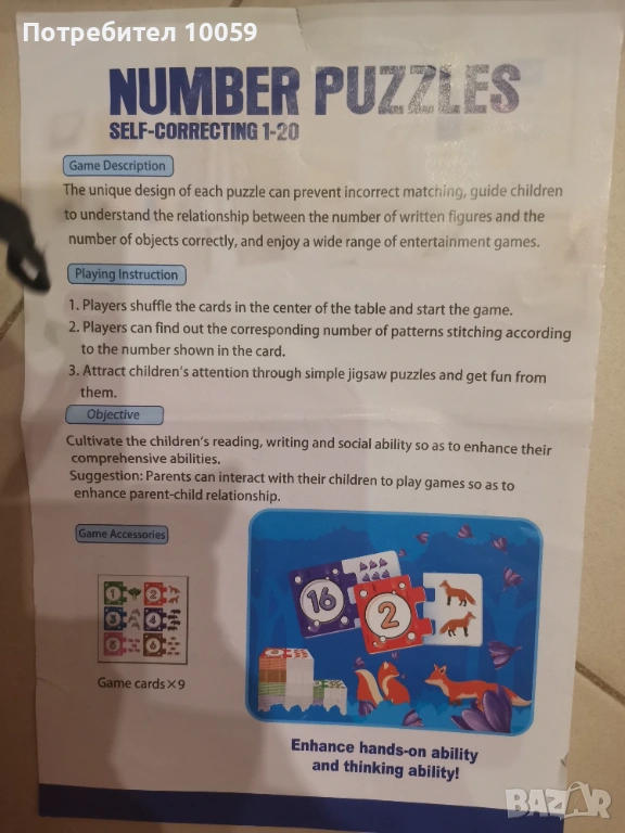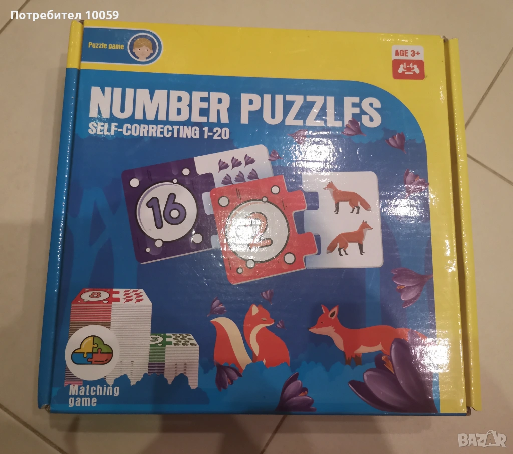 Снимка 1-3. Пъзел с числата до 20, за предучилищна група, цветни и интересни картинки за запомняне и броене на цифрите до 20,цена 6 евро