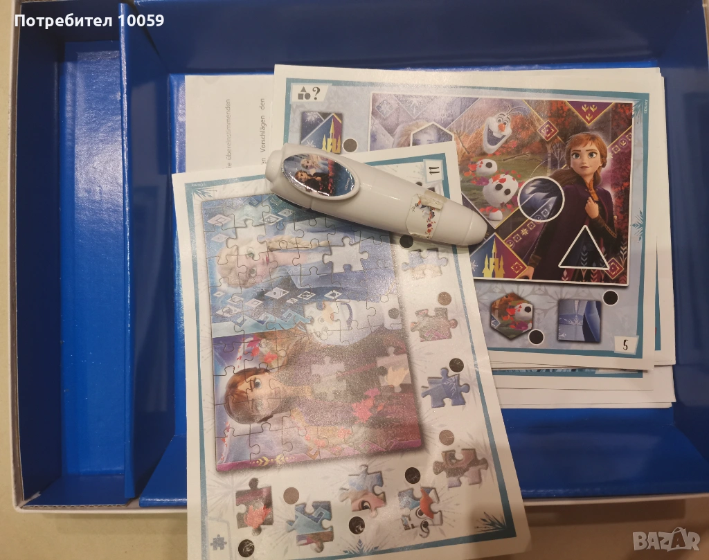 Снимка 4-6. Забавна игра с Елза и Ана, с магическа писалка, за деца от 3-6 години, 24 големи карти с над 200 въпроса за откриване на различни елементи, цена 7 евро