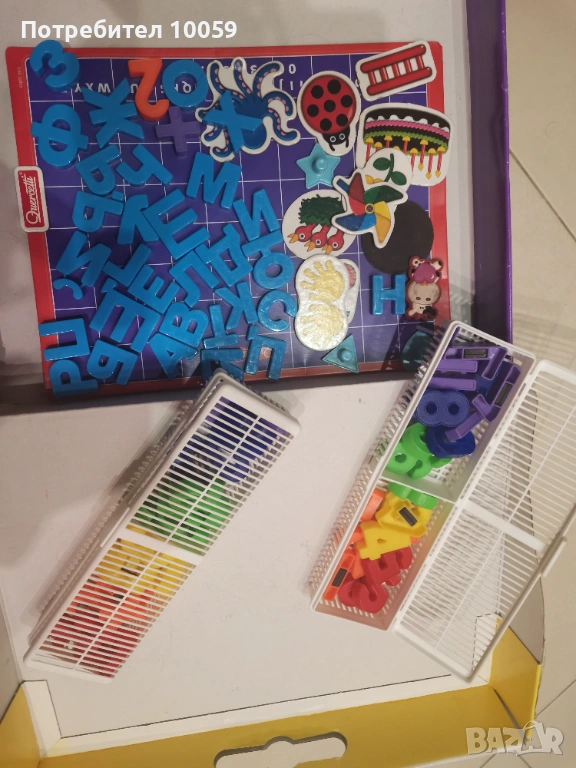 Снимка 8-10. Образователна магнитна дъска с българската азбука и числа за смятане, на quarcetti, над 64 елемента, цена 9 евро