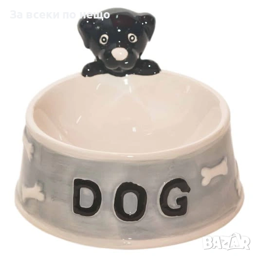 Кръгла купичка за храна за домашни любимци с декорация кученце във външната ѝ част. Цветен и закачлив дизайн и със сигурност вашият любимец много ще я хареса. Масивна и стабилна за обръщане от Вашия домашен любимец