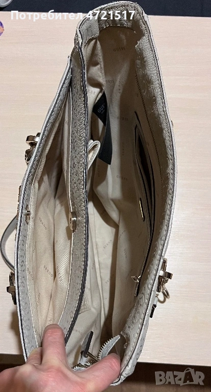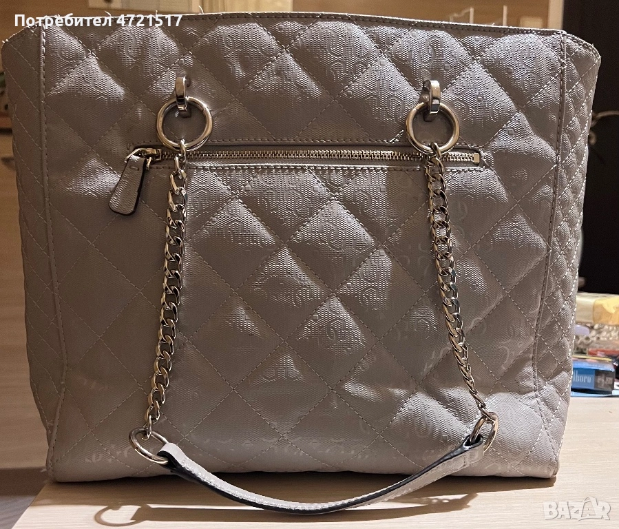 Продавам светлосива дамска чанта на марката GUESS с дължина 40см; височина 29см ; широчина 10см; С ефектни средни метални дръжки , с висящ ключодържател. Чантата е нова може да се види от снимките , за дамите със стил и вкус