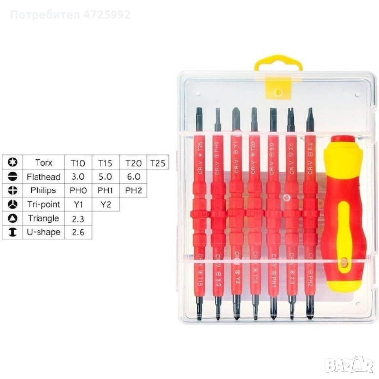 Професионален комплект двустранни изолирани отвертки с дръжка - 14в1