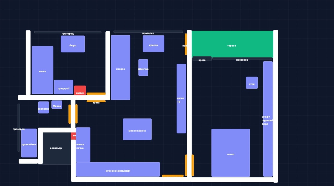 Апартаментът има чиста жилищна площ 75 кв.м. и се състои от: входно антре, просторна дневна, стая, кухня и баня с таоалетна. Два балкона- голям балкон пред двете стаи и един пред банята. Изложение: изток.