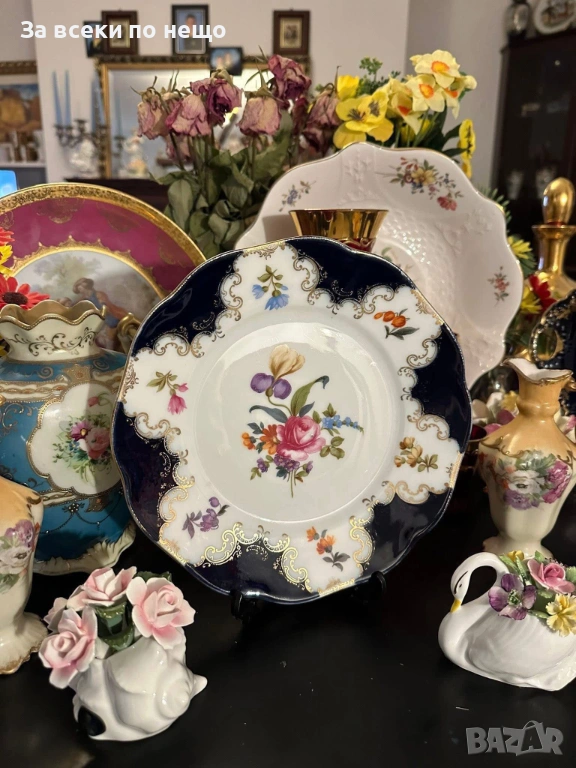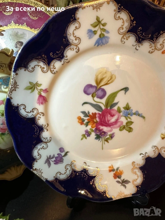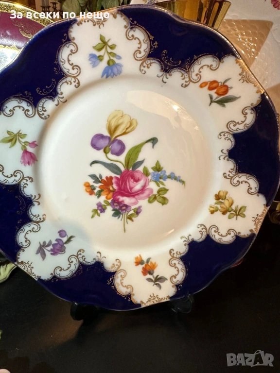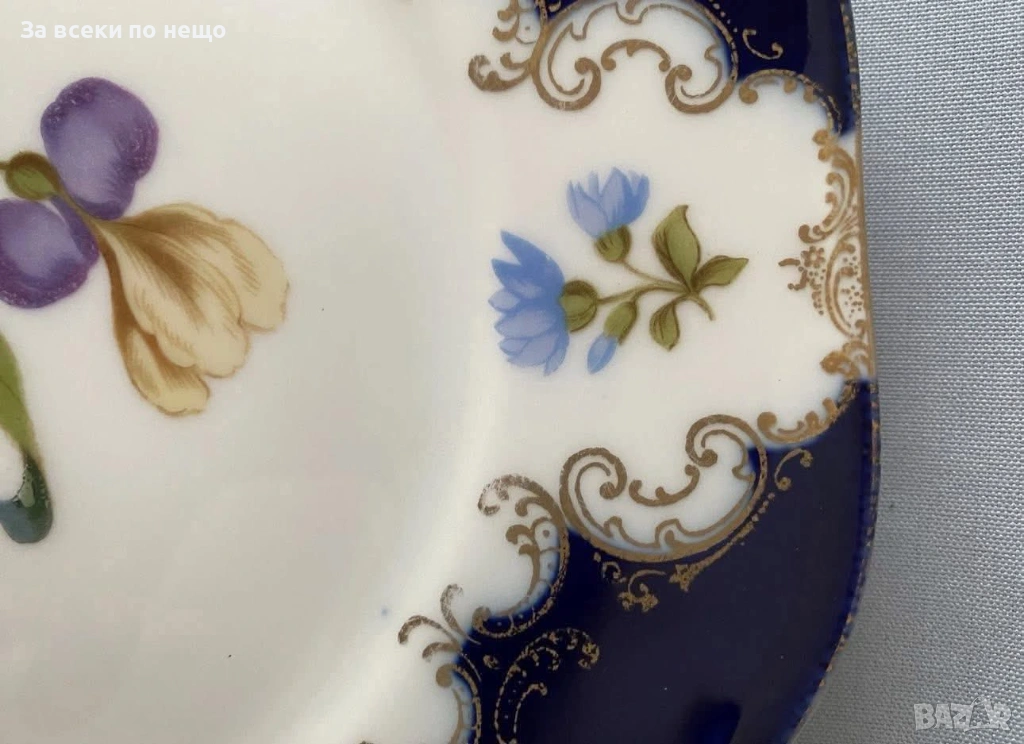 Circa 1922 - великолепно класическо плато в кобалт, злато и ръчно изрисувани цветя и букети, немска класика от началото на 20 век, неустоима красота, финес и майсторство, 22 см, много добро винтидж състояние ! Безценен и рядък екземляр за всеки ценител и колекционер!
