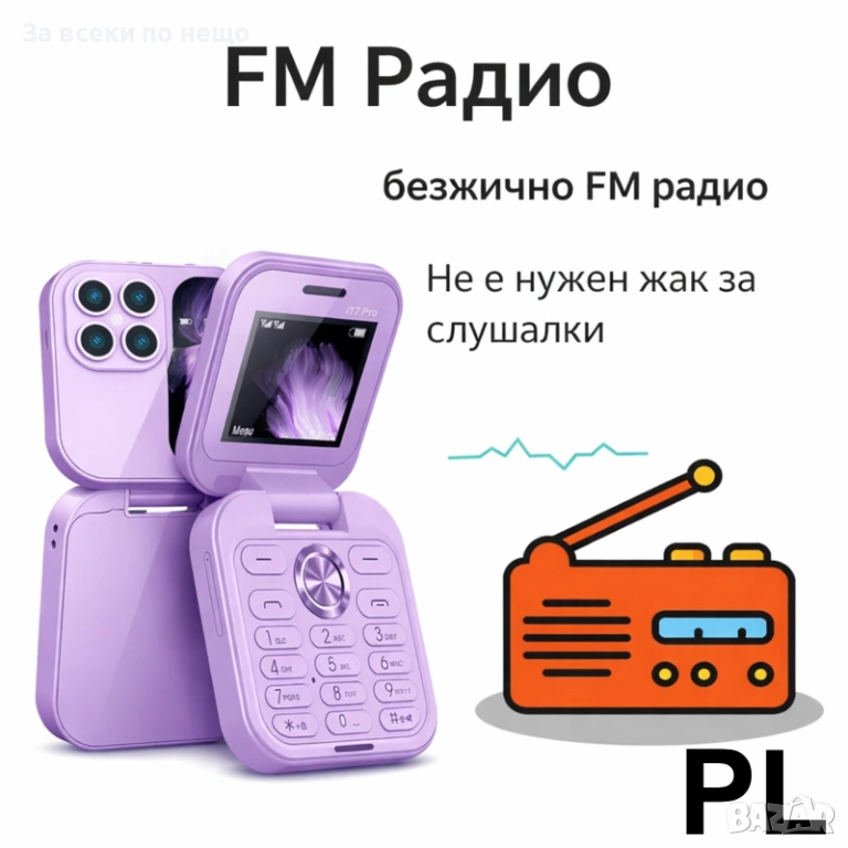 i17 Pro е компактен и лесен за използване сгъваем телефон, подходящ както за деца, така и за възрастни. Разполага с големи бутони, Dual SIM, българско меню, FM радио, Bluetooth, SOS бутон и ясен дисплей.