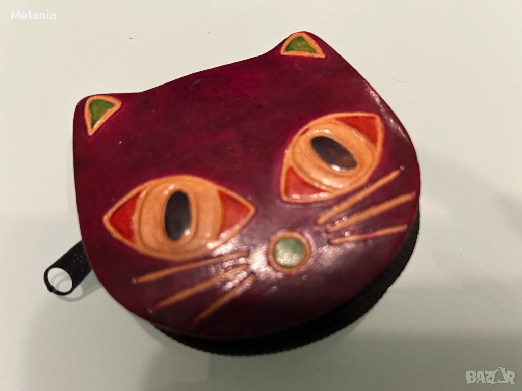 4. Малко портмоне с котешко лице, естествена кожа, размер 8 x 9 x 2 см – 10 EUR