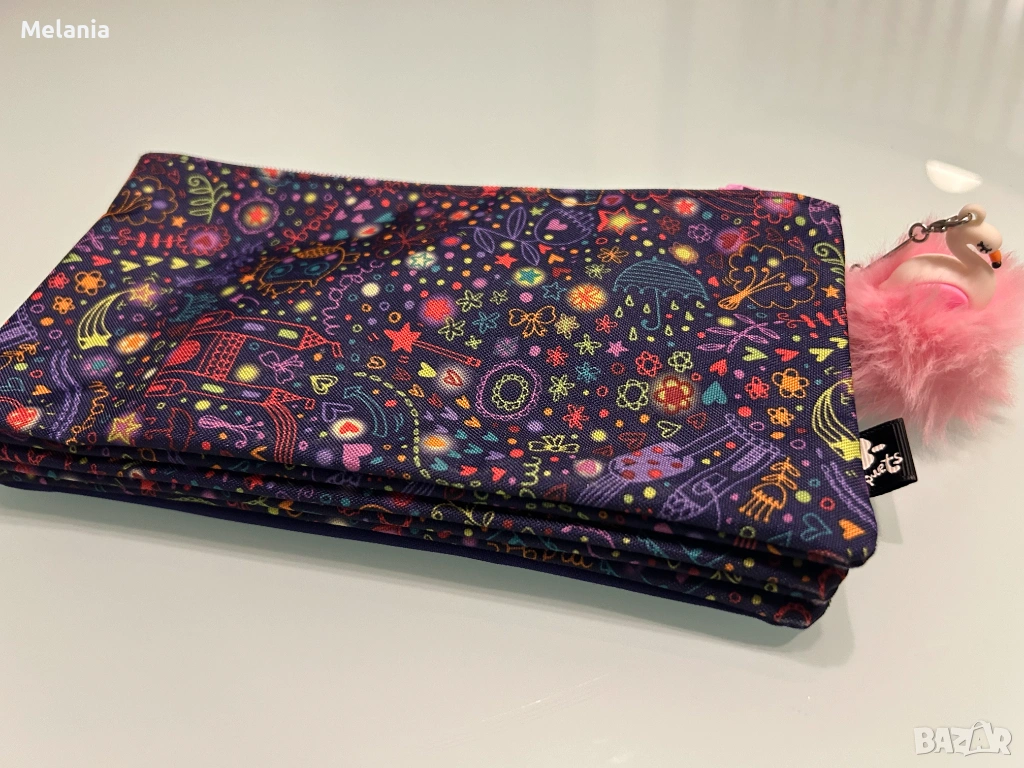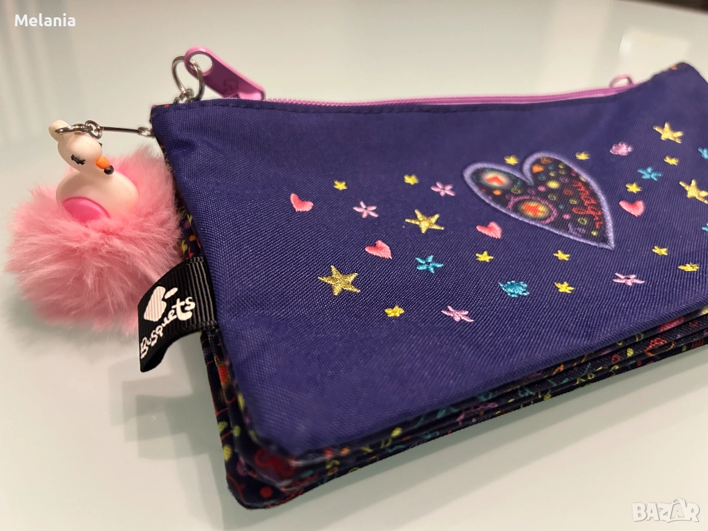 2. Несесер серията "Dreams" на марката Busquets, тъмносин със сърца и звездички. Има прикрепено декоративно пухкаво топче в розово и фигурка на лебед/патица. Изработен е от водоустойчив полиестер. С три отделения – 10 EUR