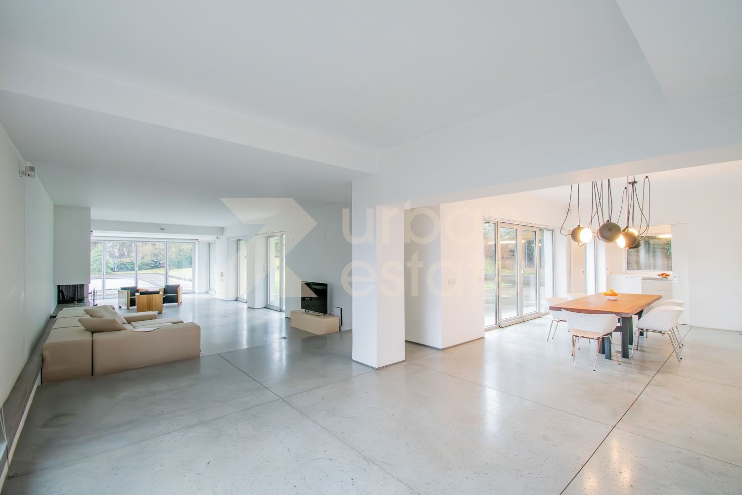 -изключително просторна дневна зона с френски прозорци и директен достъп до двора и басейна
