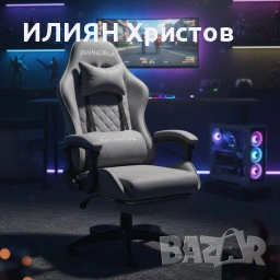 Геймърски стол с регулируема височина, лумбална възглавница и метална основа → Обява 53311345