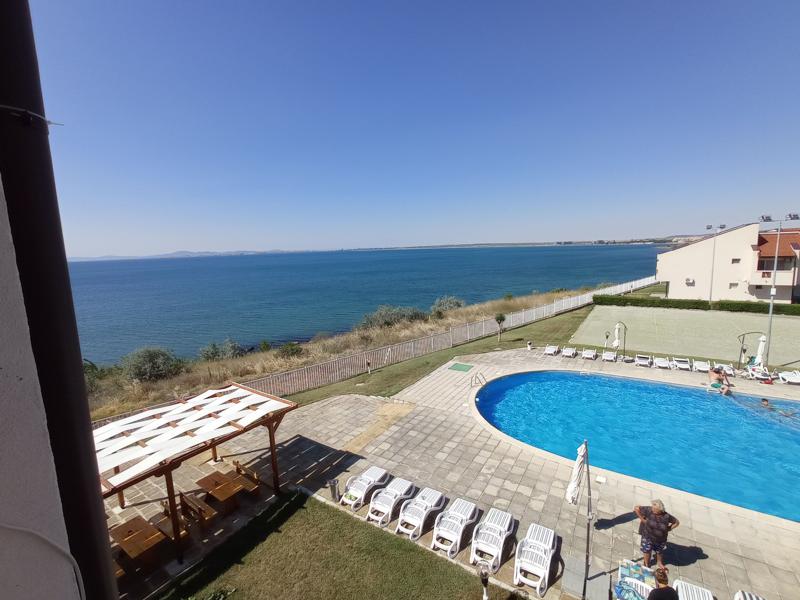 ПЪРВА ЛИНИЯ! УНИКАЛНА ПАНОРАМА МОРЕ! ТОП ЦЕНА за първа линия и тази панорама. Прекрасен комплекс, тихо и спокойно място. Тристаен апартамент 106.95 кв.м. с невероятно красива панорама, първа линия, обзаведен, разположен в целогодишно работещ комплекс с отлично местоположение. Апартаментът е на две нива, като на първо ниво има хол с кухненски кът, спалня, баня, панорамна тераса към хола и тераса към спалнята. На второ ниво има просторна спалня, баня, балкон. От всички страни се разкрива впечатляваща морска панорама. Разположен е на самия морски бряг, издигнат на скали. Същевременно има и лесен и близък достъп до пясъчен плаж - 150 м. Комплексът предлага на своите клиенти открит басейн с детски сектор, невероятно красиви градини с прекрасно озеленяване, безплатни шезлонг, ресторант-бар, игрище, безплатен паркинг, контрол на достъпа до комплекса. Центърът на Равда е на десетина минути пеша. От всеки един апартамент се разкрива невероятна панорама към морето. Такса поддръжка 6Е/ кв.м (ако не се ползва басейн) и 9,5Е/кв.м (ако се ползва басейна). За повече информация и огледи: Ирина Маркова - 0888 31 71 48, e-mail: