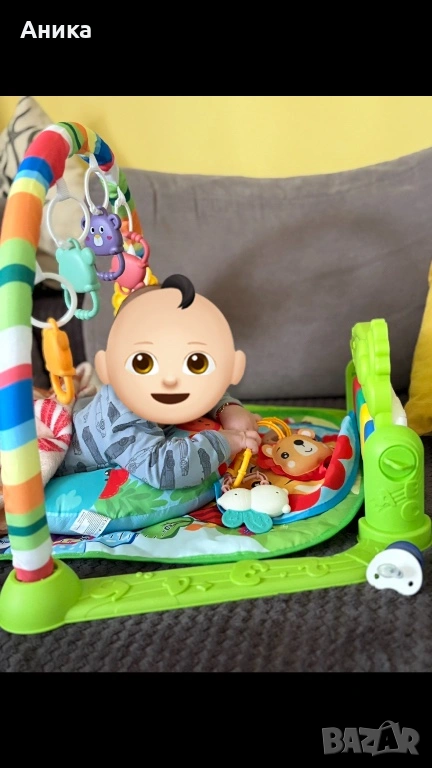 Активна гимнастика за бебе в зелен цвят. Има много разнообразни мелодии.