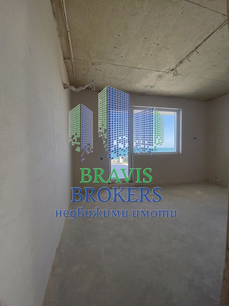 Имотът представлява : голямо входно Антре, просторна и светла Всекидневна с обособена Кухненска част; уютна Спалня, втора Спалня, функционална Баня с Тоалет, слънчева Тераса с фронтална гледка МОРЕ. Апартаментът е разположен на пети жилищен етаж от общо седем, в нова модерна тухлена сграда с отлично поддържани общи части в луксозен жилищен комплекс.