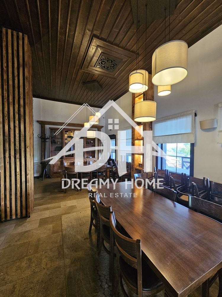 Със застроена площ 398 кв.м., заведението предоставя обширно пространство за нуждите на бизнеса. Към имота има прилежащ двор с площ от 180 кв.м., предлагащ прекрасна гледка към водното огледало идеално място за летни вечери и тържества.