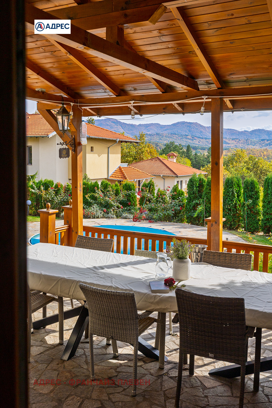 Продава се самостоятелна триетажна многофамилна къща Гардения с РЗП 308 кв.м и двор 588,6 кв.м, разположена в престижен затворен комплекс в с. Гумощник, общ. Троян. Имотът е в отлично състояние, напълно обзаведен и в момента функционира като къща за гости.
